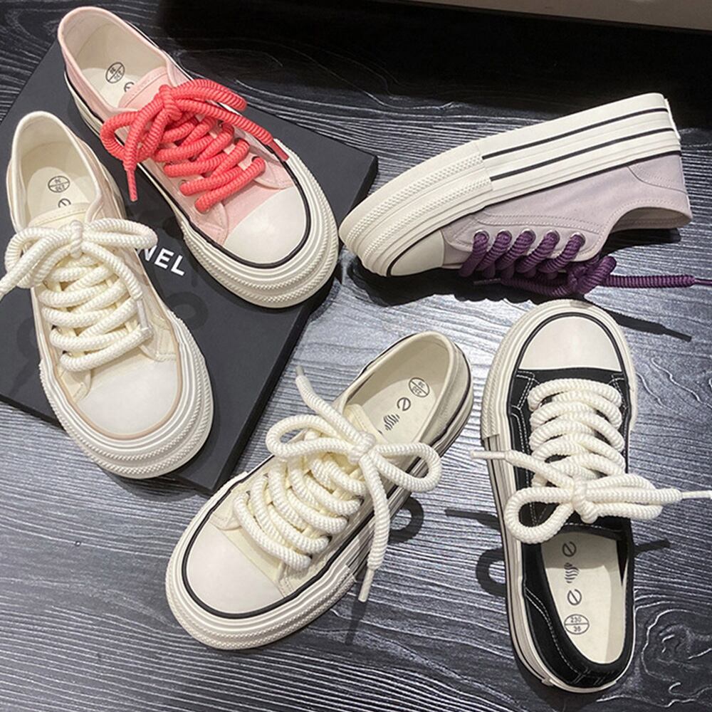 ローカットスニーカー レディース 歩きやすい靴 太紐スニーカー 大人可愛い おしゃれフラットシューズ 軽量美脚 疲れない