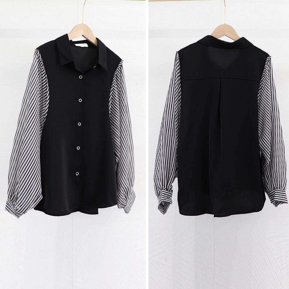 ゆったり ストライプ柄 ブラウス 袖切り替え オフィスカジュアル トップス 大人女性 おしゃれ ブラウス着やせ 通勤大人
