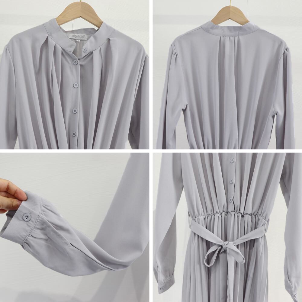 ロングワンピース 長袖プリーツワンピ韓国