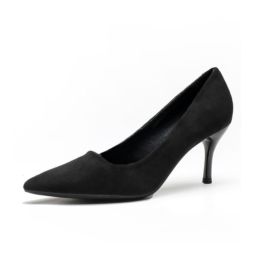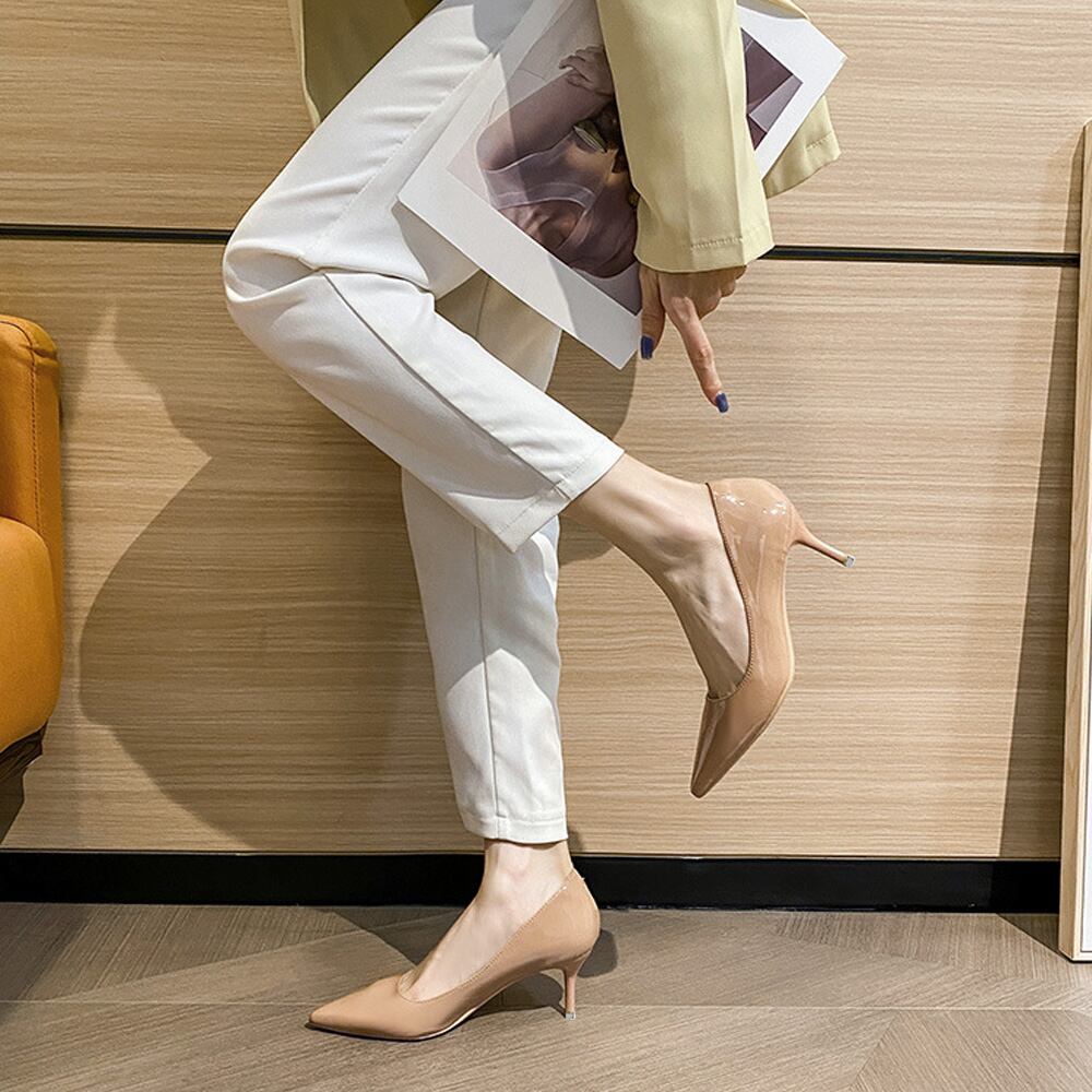 1足は持っておきたい、ベーシックなカラーでシンプルなデザインのポインテッドトゥパンプスです。