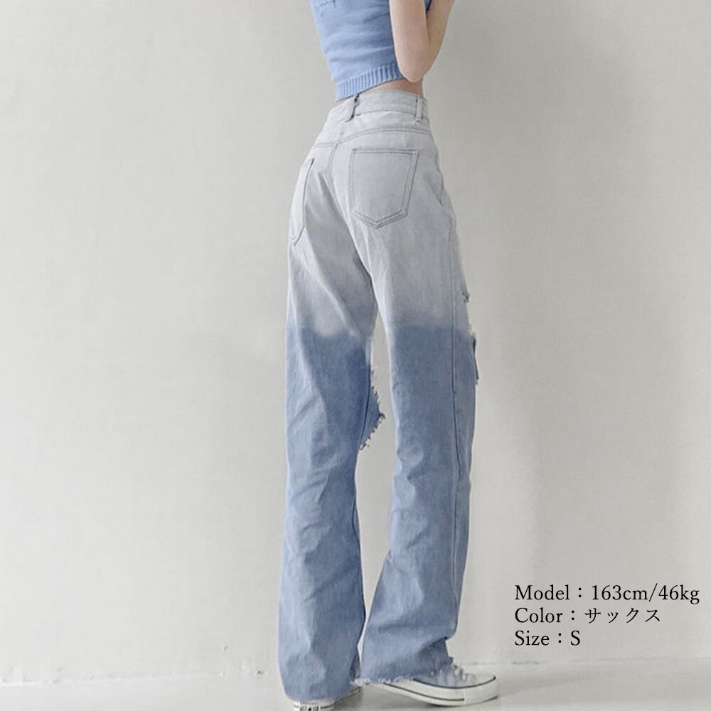 レトロ ストレートデニム レディース ジーパン グラデーション ジーンズ  カットオフ ロングパンツ おしゃれ  春秋夏