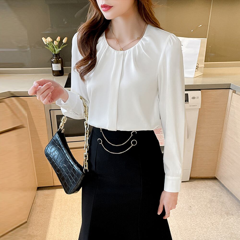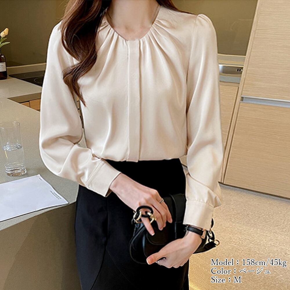 ギャザーブラウス 通勤OL オフィスカジュアル シャツブラウス お洒落 着やせトップスきれいめ とろみシャツ 春秋服韓国