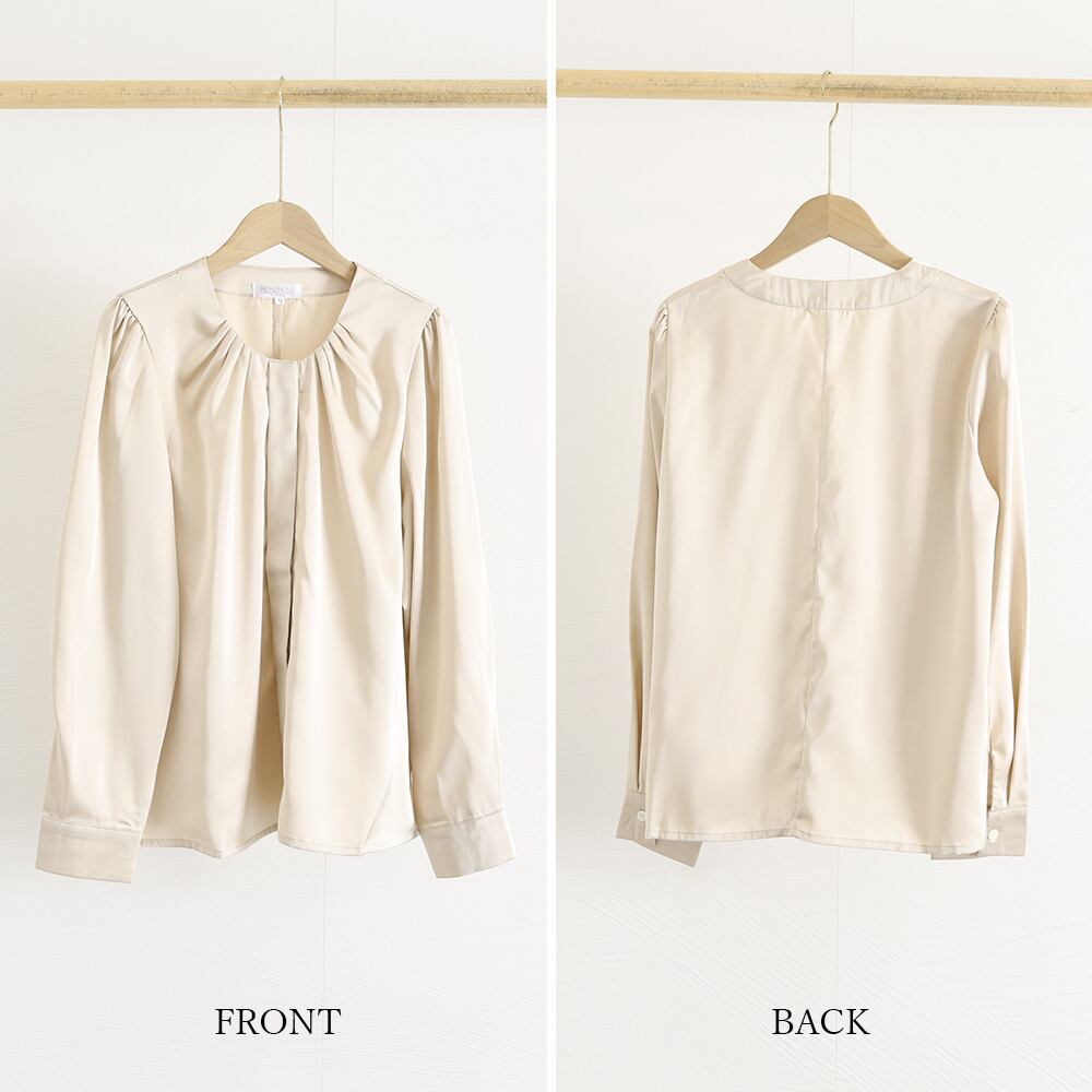 首元のタックデザインがデコルテを綺麗に魅せて、女性らしさをアップ!