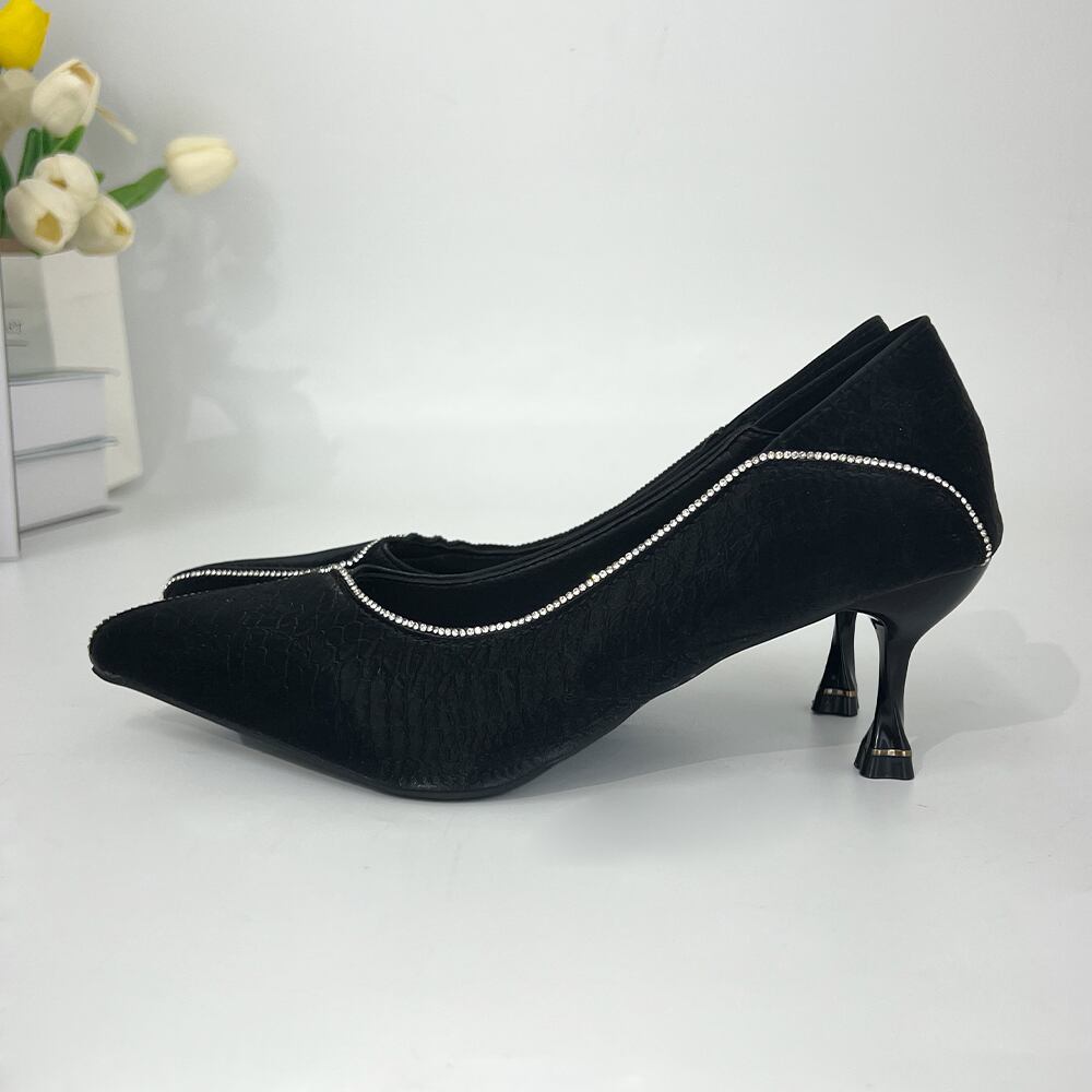 レディース ミドルヒール ラインストーン きれいめ フェミニン大人 オフィス 結婚式 痛くない歩きやすい お洒落 美脚