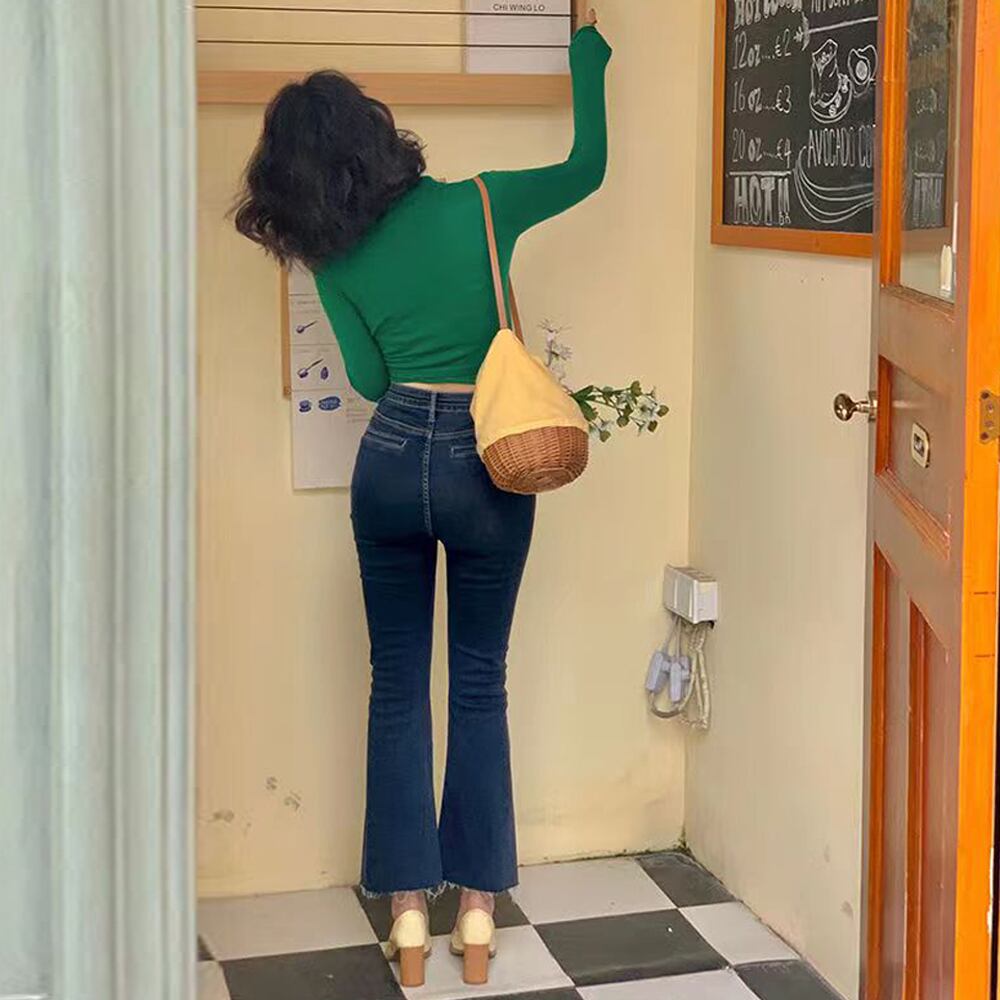レディース Vネック ショート丈ニットトップス 胸元セクシー 長袖ニットソー ハイウエスト 襟付き タイトニット 春秋冬