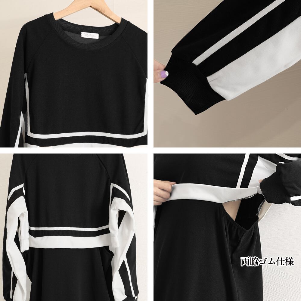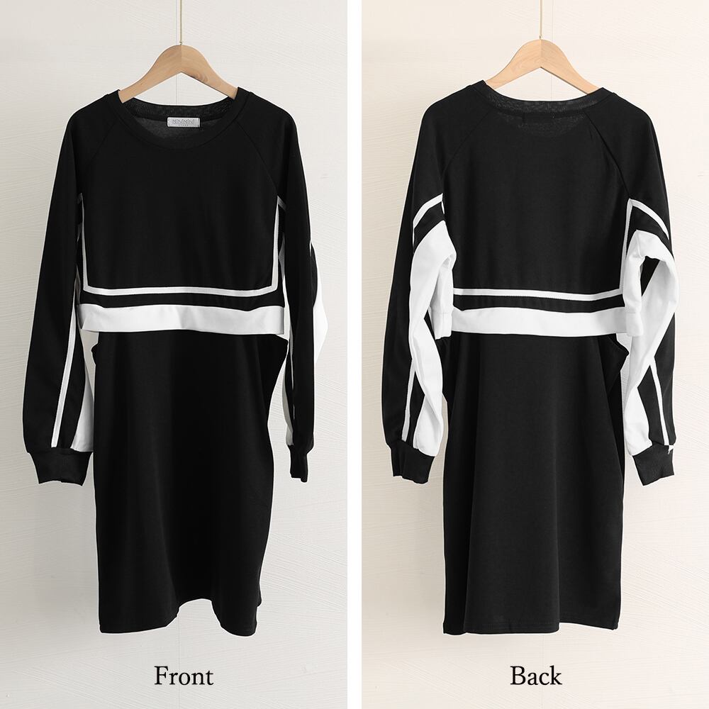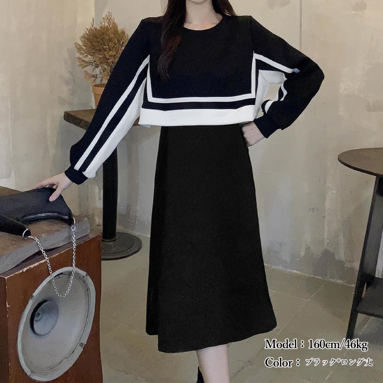 おしゃれモノトーンワンピース レディース バイカラーワンピ 体型カバー 着やせワンピース ショート丈 ミニワンピース 黒