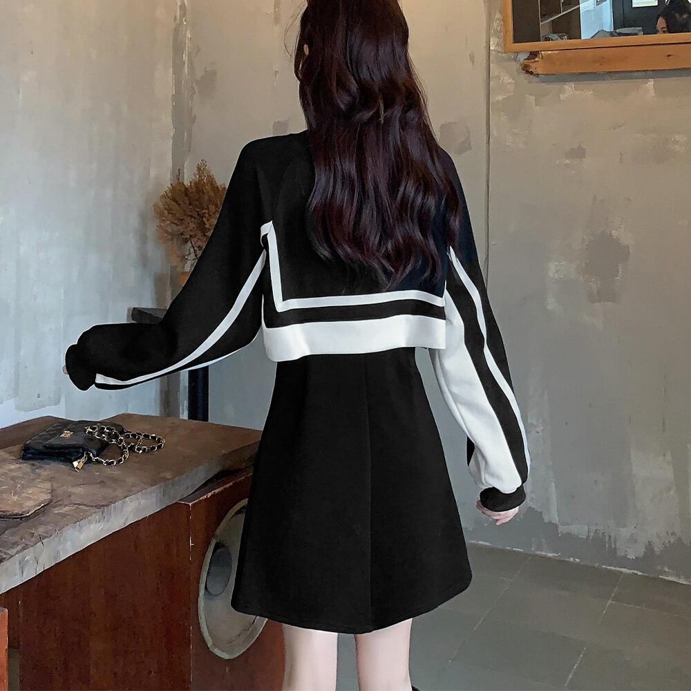 大人っぽい白黒配色使いがスタイリッシュ、まるでSET-UPを着ているかのように見える韓国新作のデザインワンピース