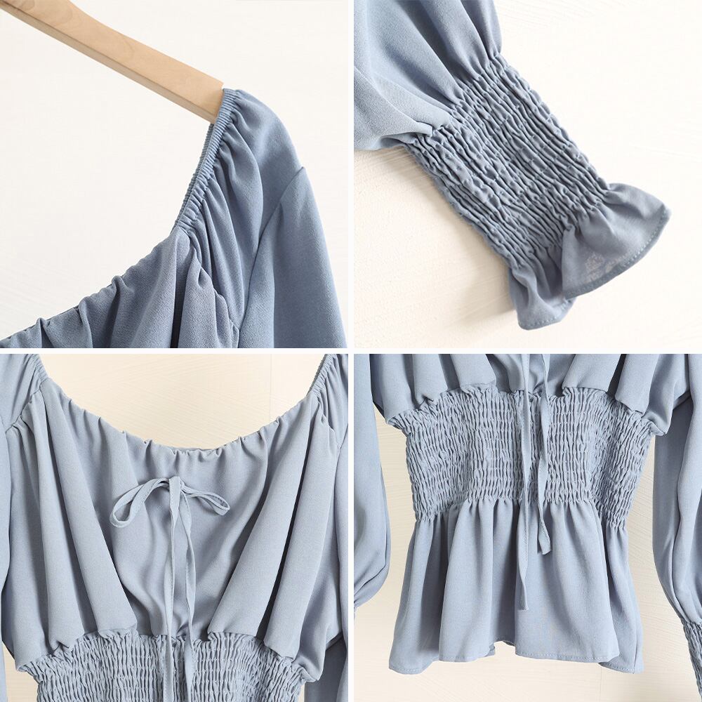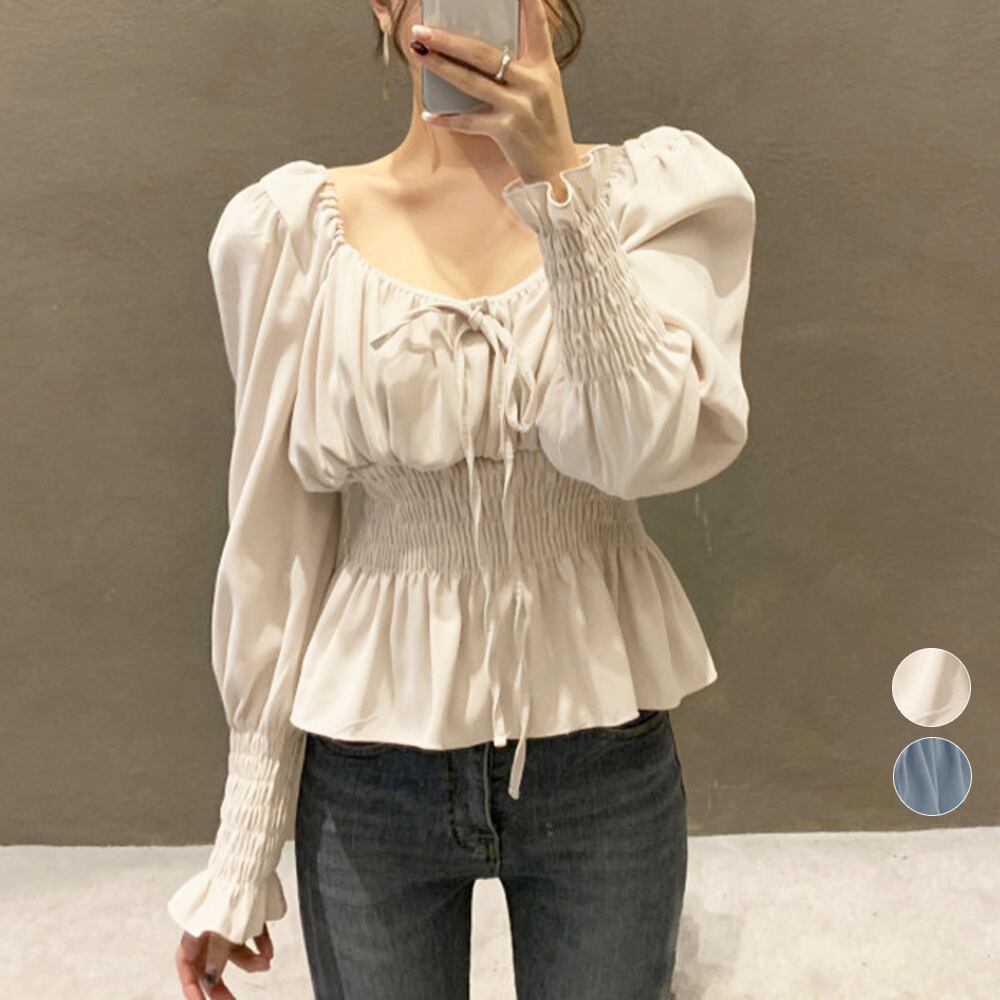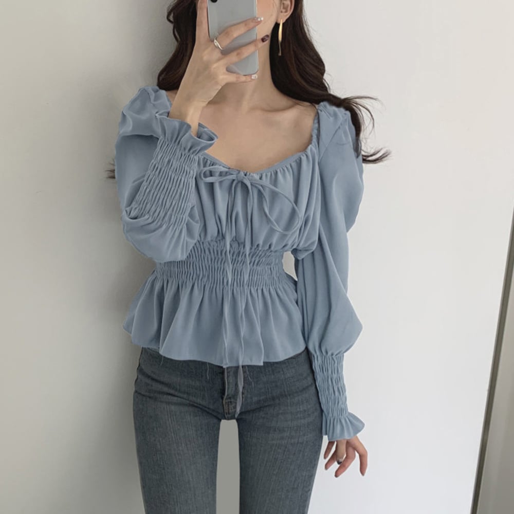スクエアネック無地 ブラウス 上品通勤 ガーリーコーデ韓国
