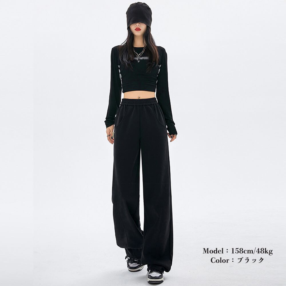 レディースボトムス ロング丈 イージーパンツ ウエストゴム 韓国 ストレートパンツ ダンス衣装 ゆったり カジュアル
