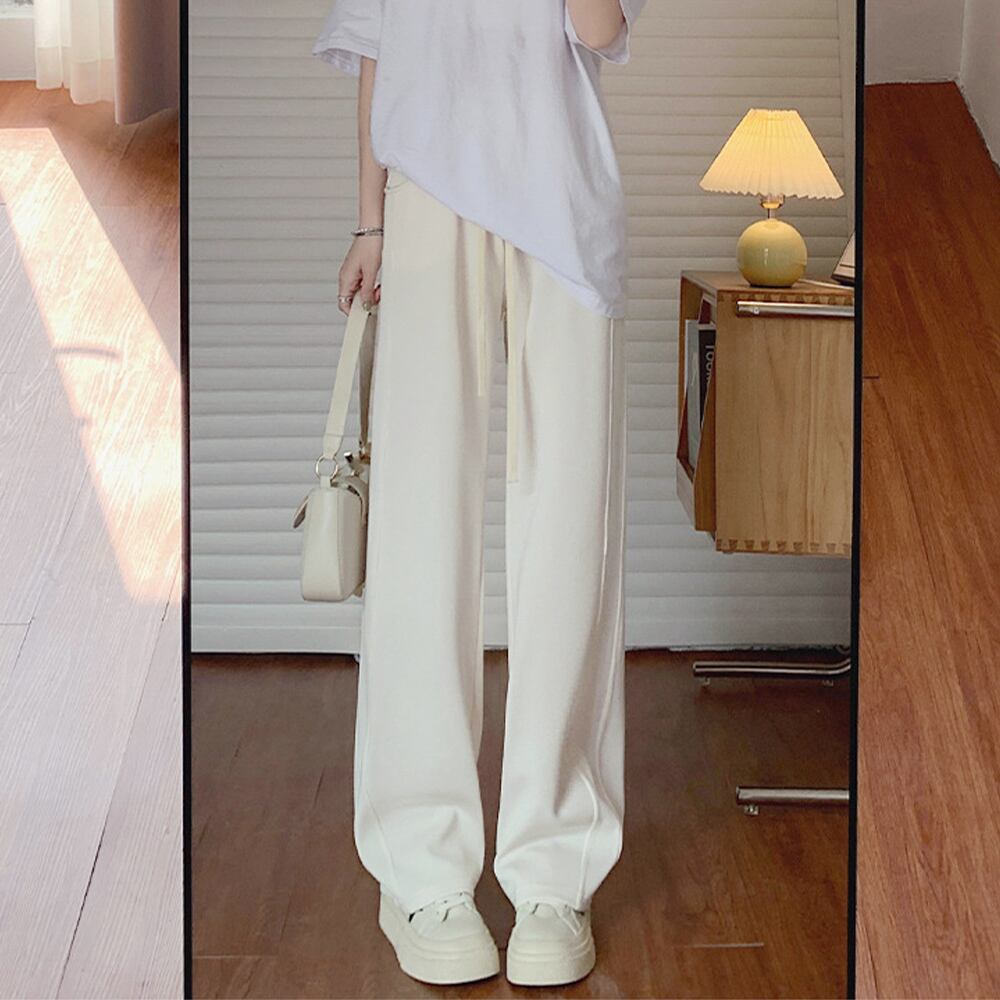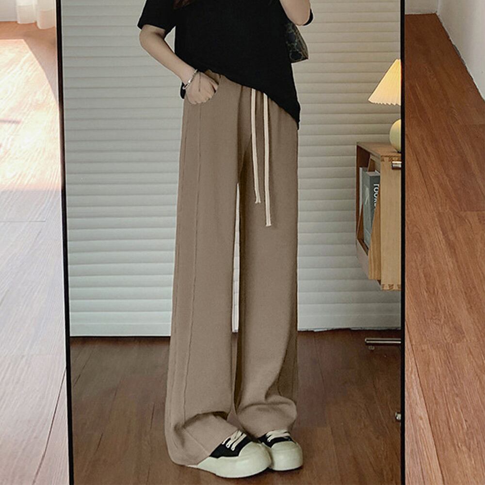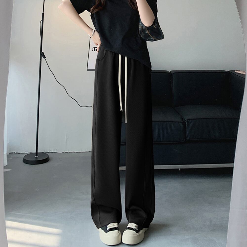 レディース ウエストゴム ストレートパンツ セミワイドパンツ 着やせ 韓国  おしゃれ カジュアル 楽ちん