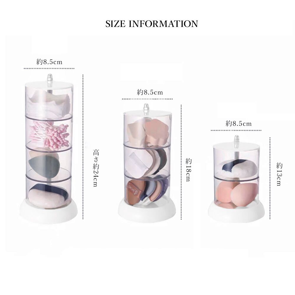 収納トレイ 2段3段4段回転収納ボックス  透明 化粧コットンケース アクセサリー収納ボックス ホワイトお洒落 パフ置き