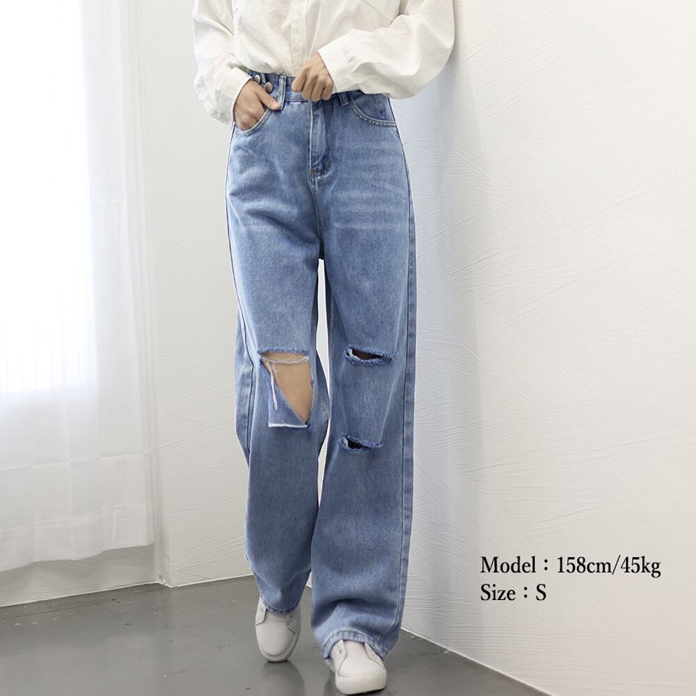 レディース ストレートパンツ ゆったり ジーンズ レトロ セミワイドパンツ 着やせ 春夏秋 カジュアルボトムス 脚長韓国