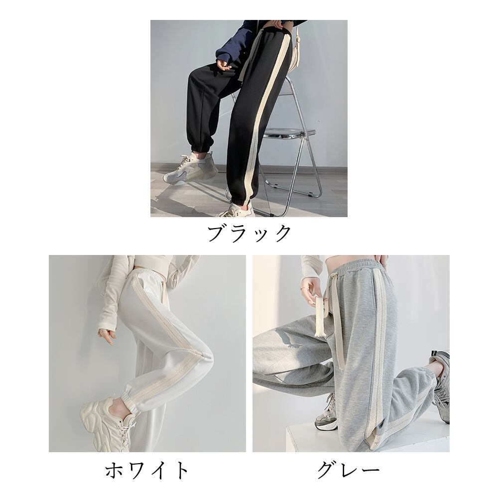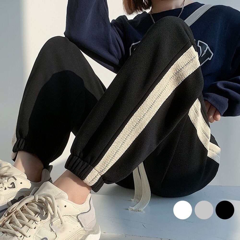 レディースボトムス 韓国風 サイドライン ハイウエストパンツ ウエストゴム 部屋着 運動着 カジュアル ダンス衣装
