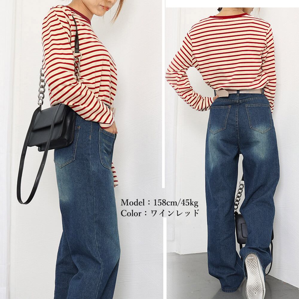 ボーダー柄tシャツ 長袖カットソー 春秋