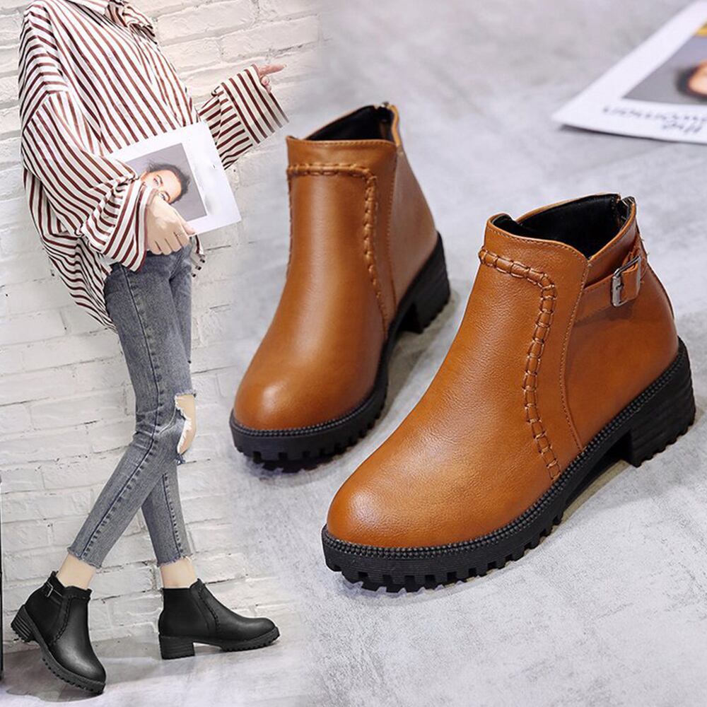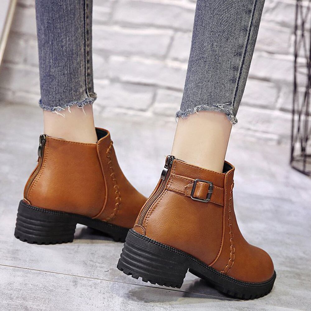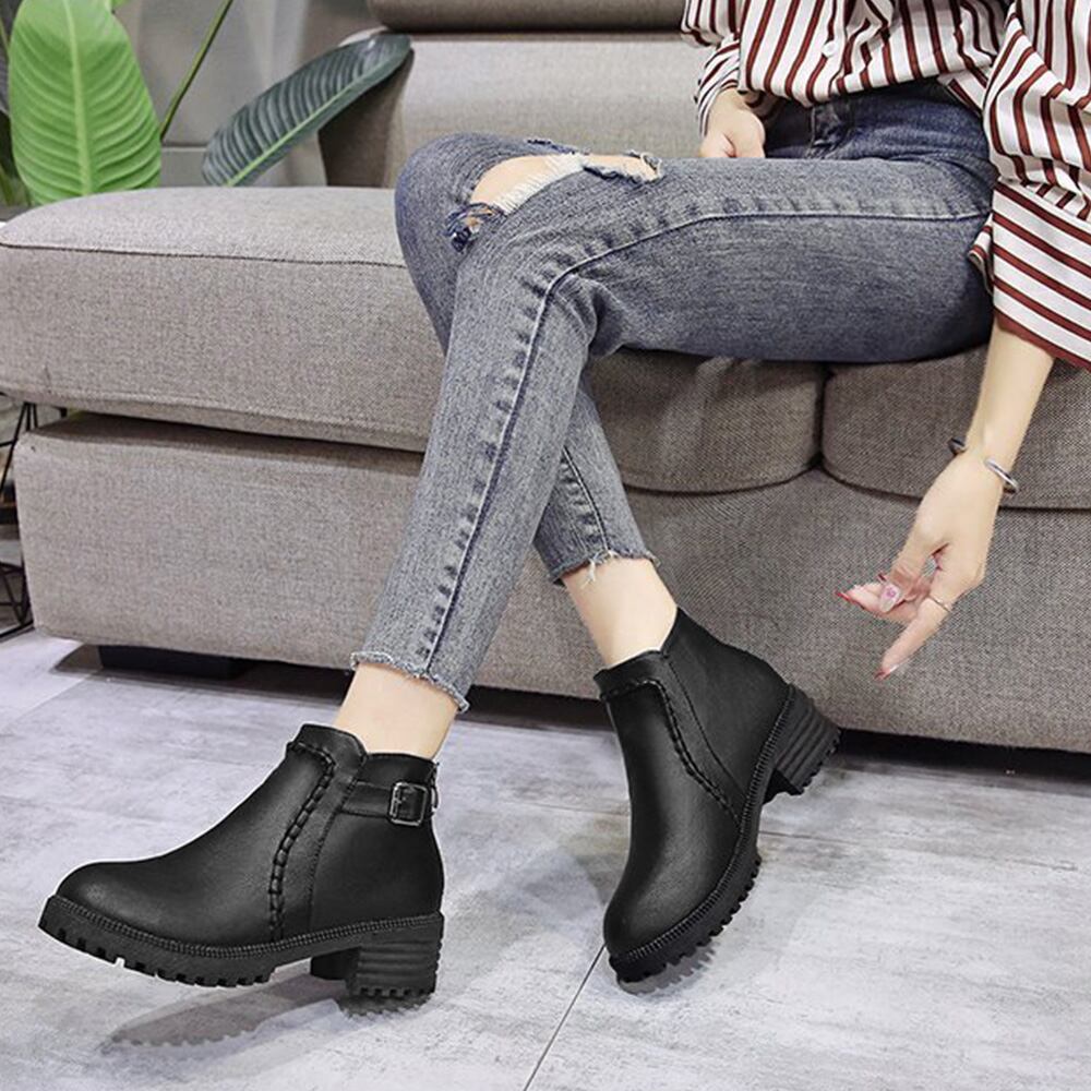 レトロ PUレザー バックルブーツ 履きやすい シューズ カジュアル バックジップブーツ 歩きやすい 通勤秋冬靴おしゃれ