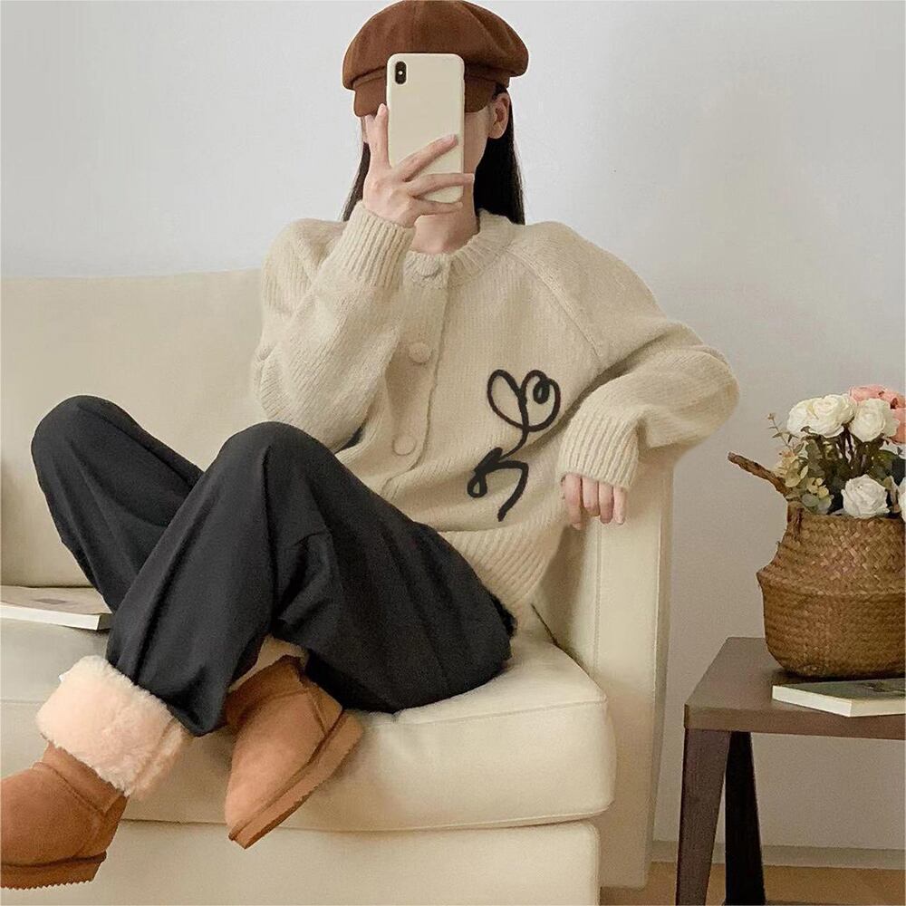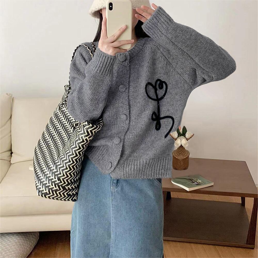 レディース 花刺しゅうニットトップス お洒落 長袖秋服 冬服 ニットアウター 韓国きれいめカジュアル 羽織り大人かわいい