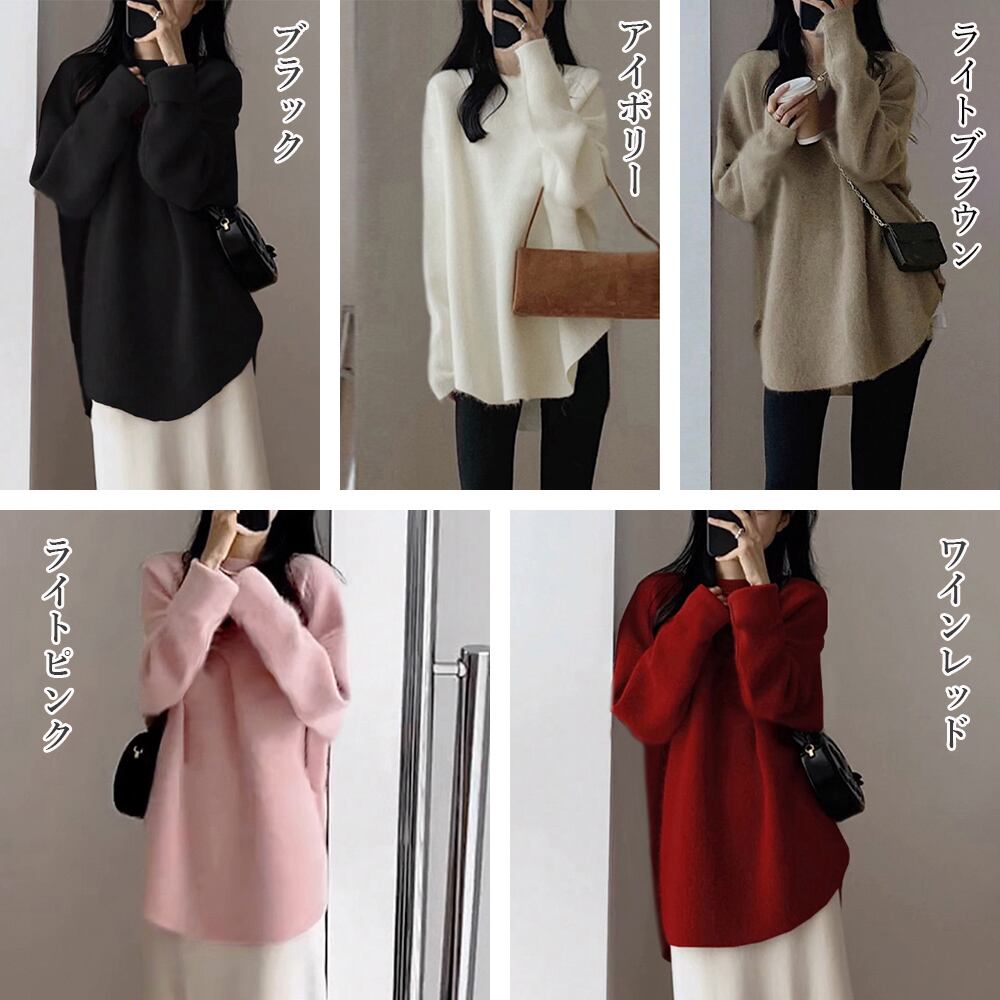 レディース おしゃれニットカットソー 長袖ゆったり ニットプルオーバー 体型カバー韓国セーター 着やせ 無地ラウンドヘム