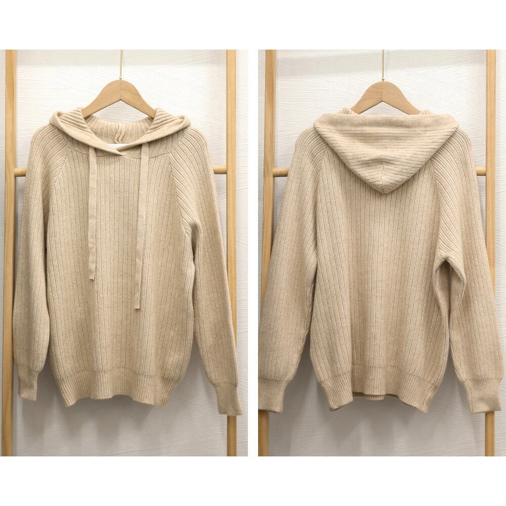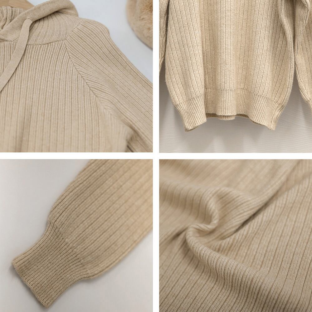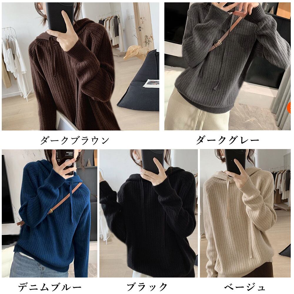 リブニットパーカーレディース韓国トップス