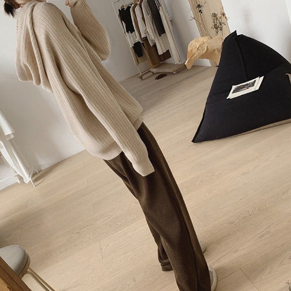 ゆったりめのサイズ感で着心地が抜群、ラフながらも女性らしい華奢感を強調し、着やせ力が高いリブ編み仕様のスマートアイテム