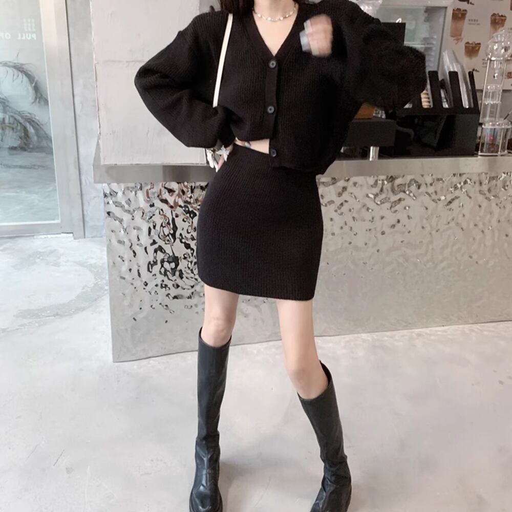 ゆるフィットシルエットでセクシー可愛いショートカーディガンとタイトスカートの上下セット