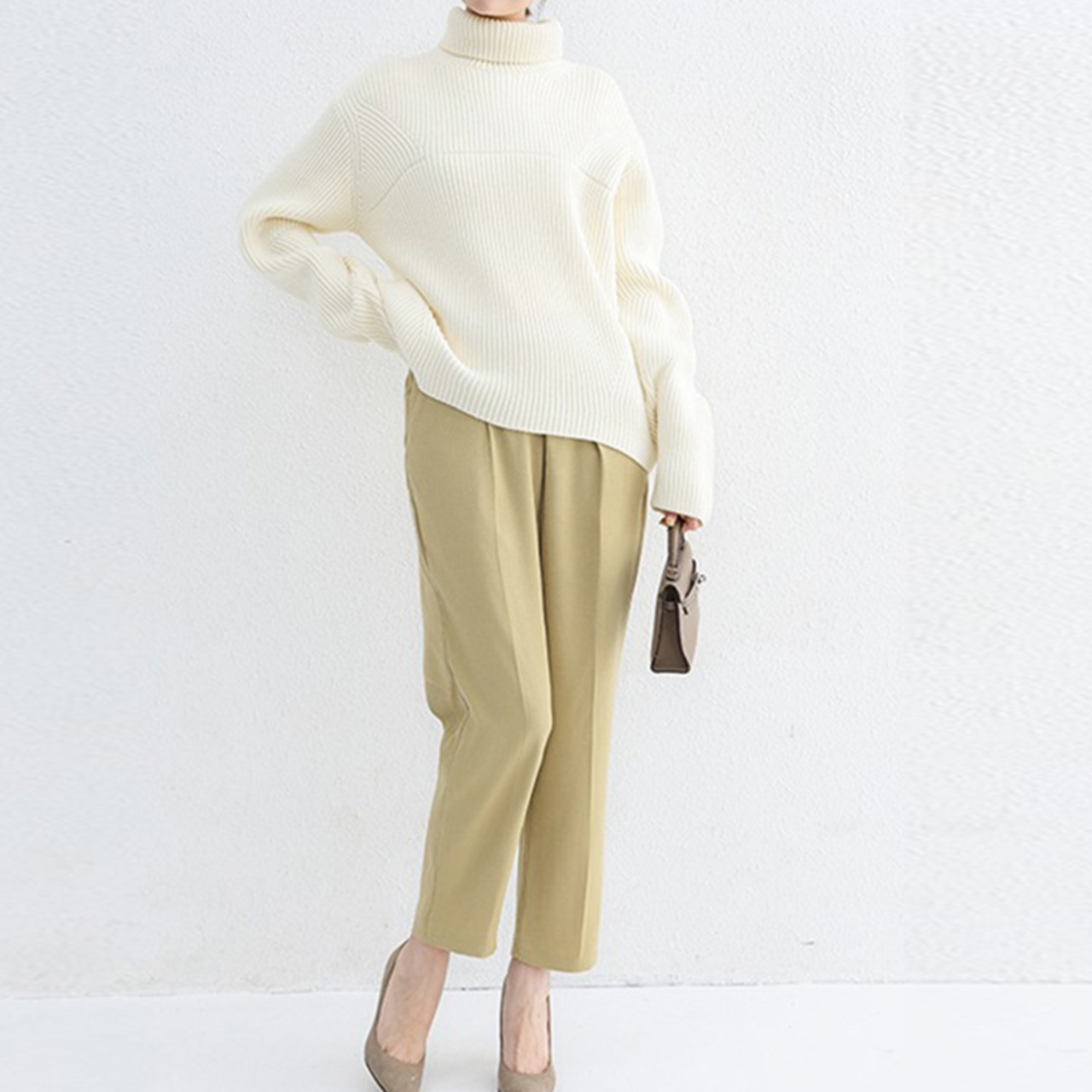程よいゆとりがありながらもすっきり細まるシルエットで、トップスを選ばずロングシーズン活躍できるおすすめボトム