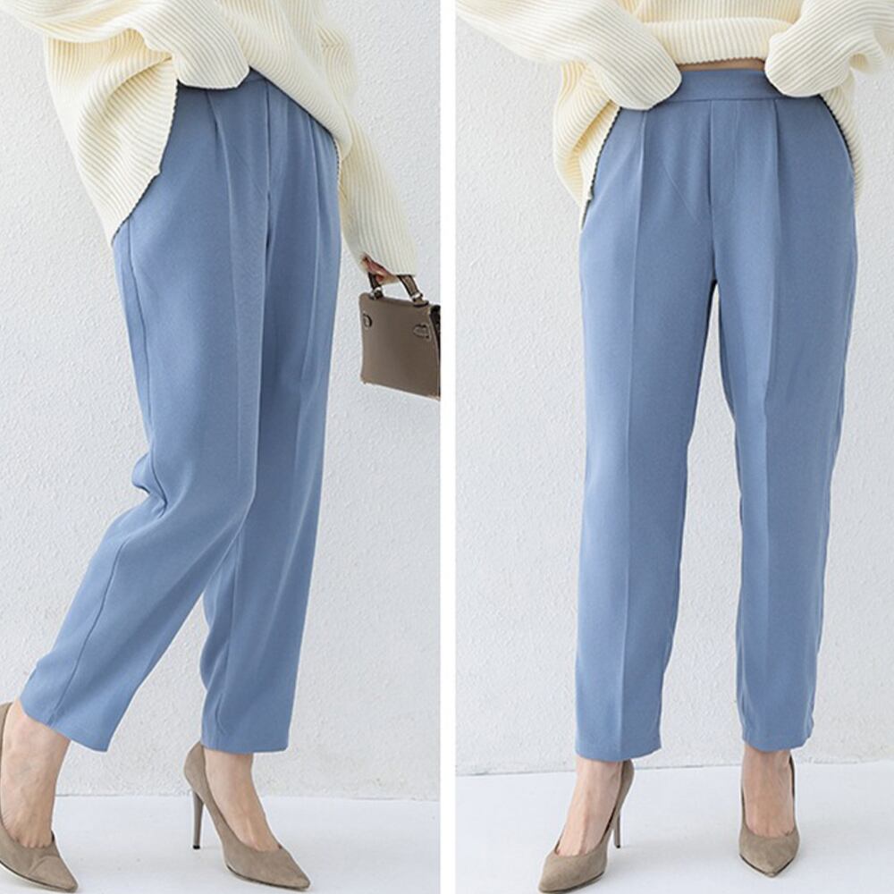 黒パンツ 着やせ オフィスカジュアル ウエストゴム 無地