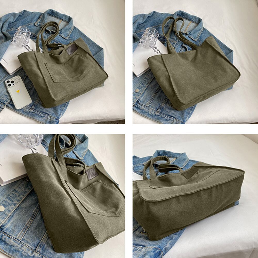 大きめママバッグ 無地 手提げバッグ 帆布レジャー旅行鞄
