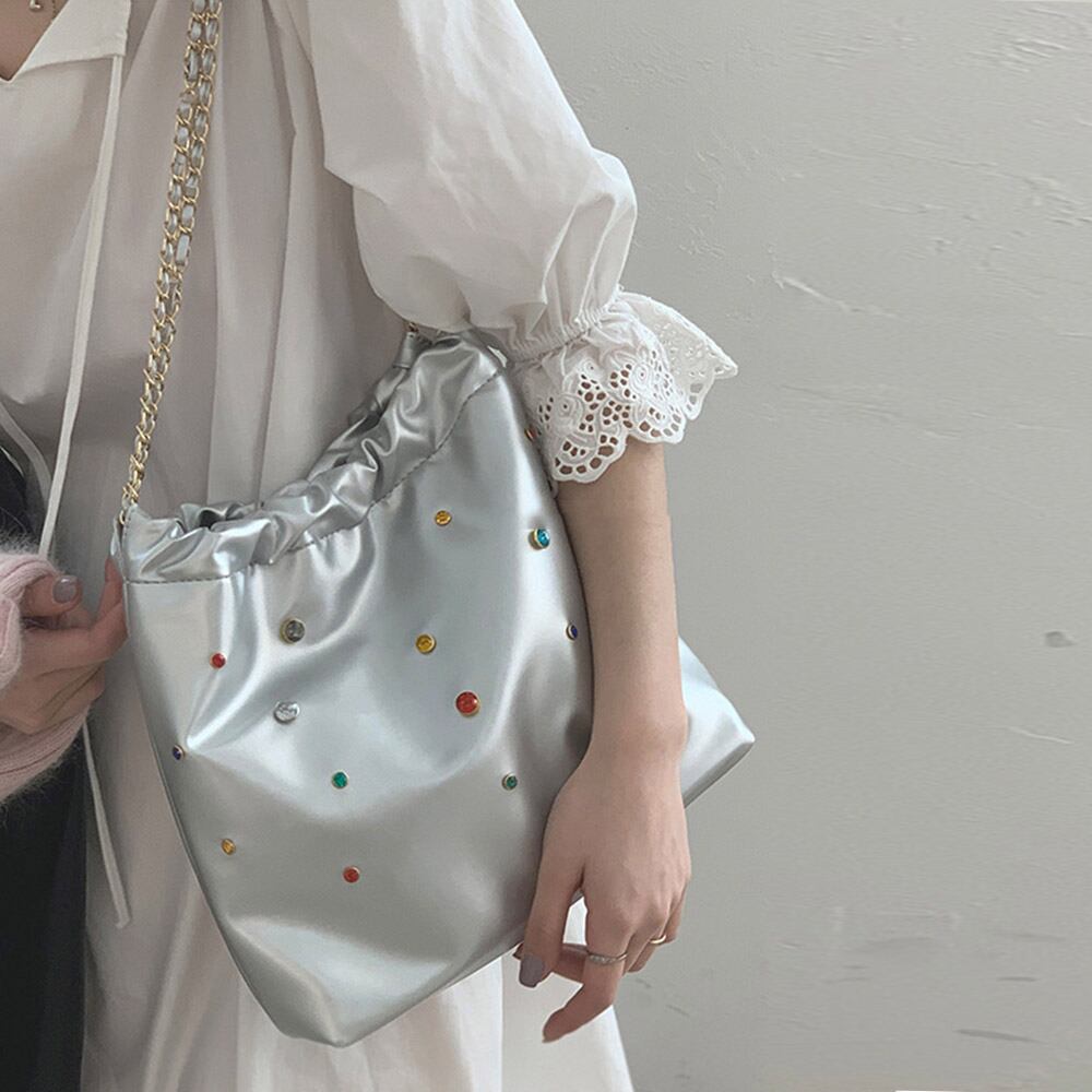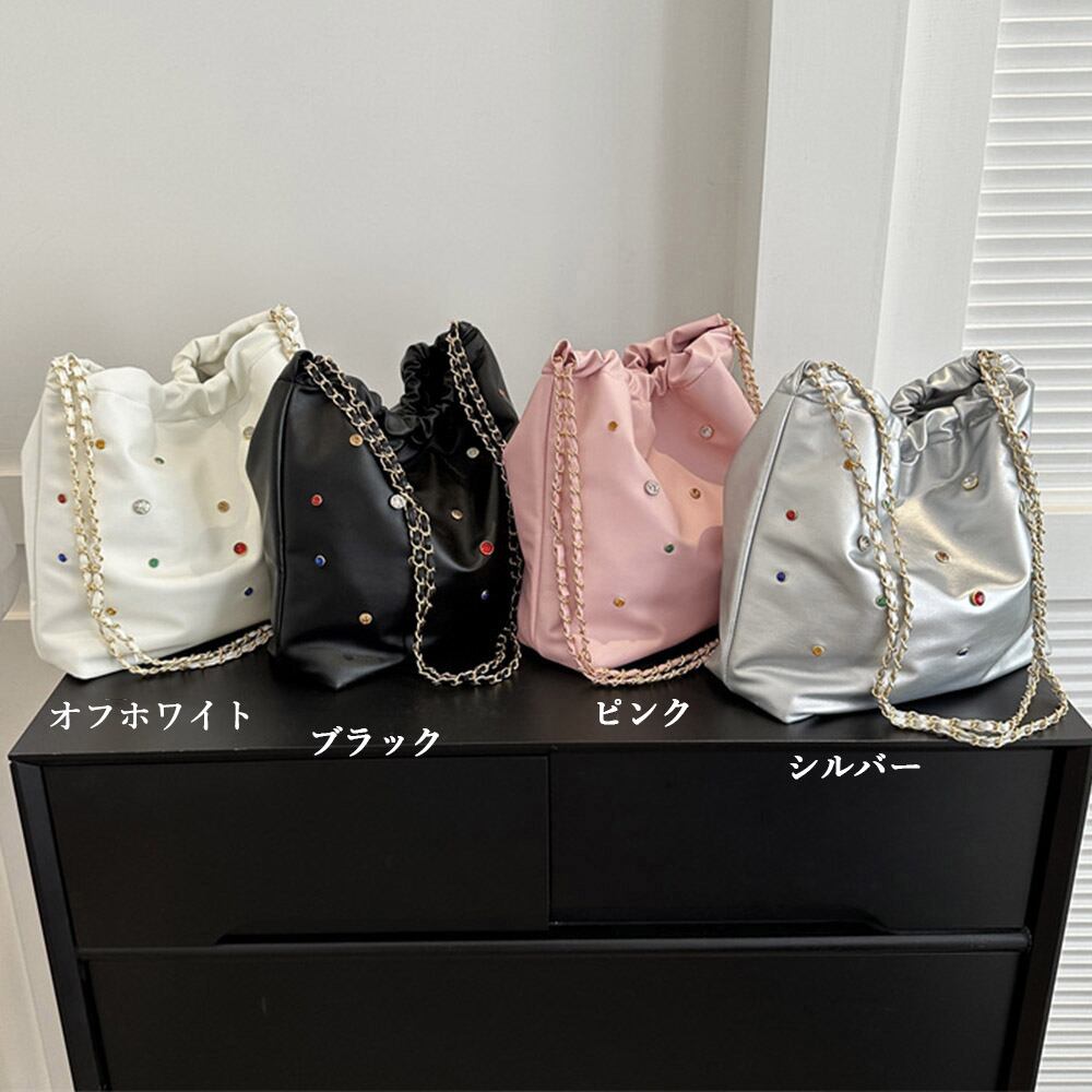 レディース 可愛い ストラップバッグ ビーズ付き 韓国ファッション PUレザー 斜め掛けバッグ 2way