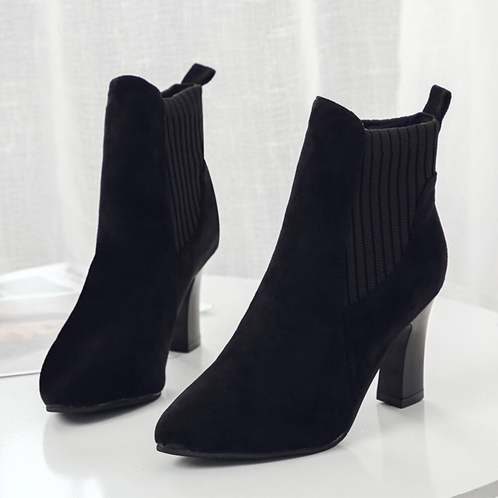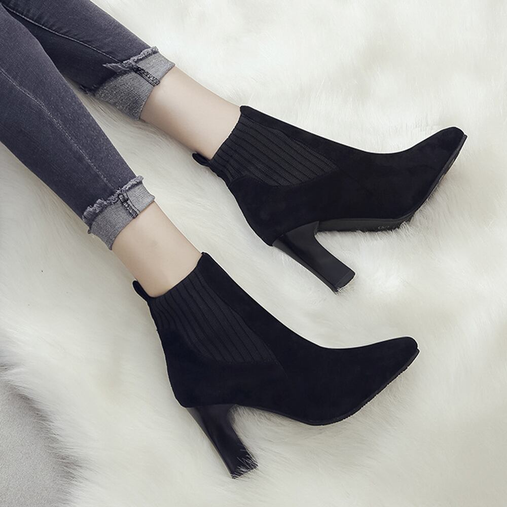 ブーティー ショート丈 太ヒール スエード 秋冬 暖かい カジュアル おしゃれ シンプル 痛くない