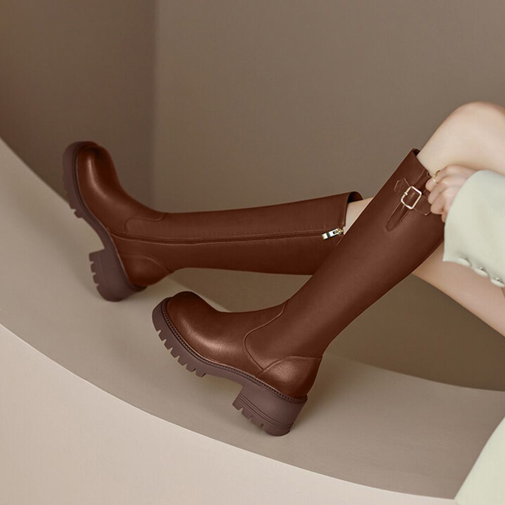チャンキーヒール ニーハイブーツ 膝下 ボリューム感 大人 オルチャン きれいめ シンプル 秋冬 人気 疲れにくい 韓国