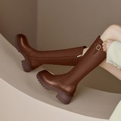さりげない装飾ベルトで、クラシカルな雰囲気を漂うロングブーツです。