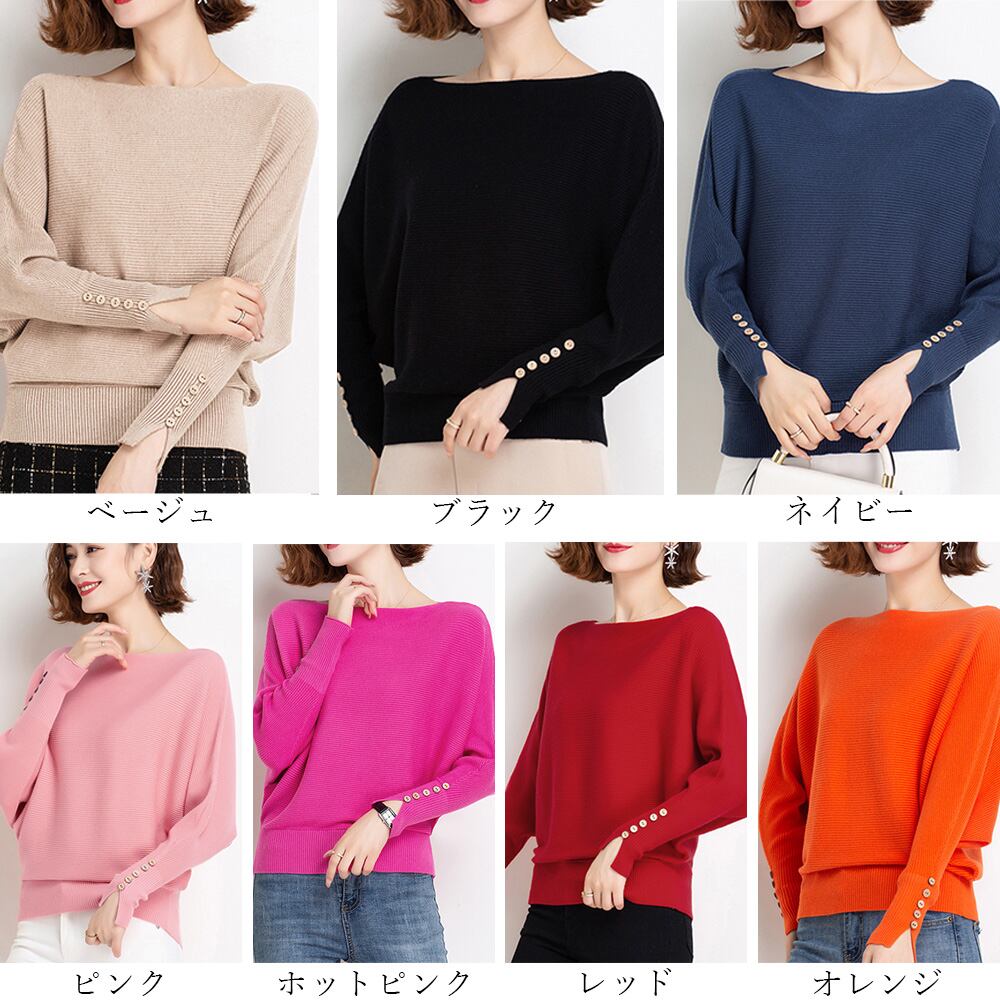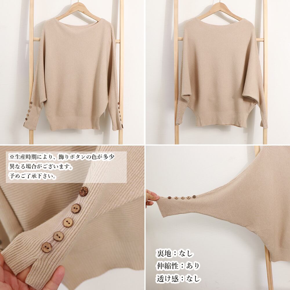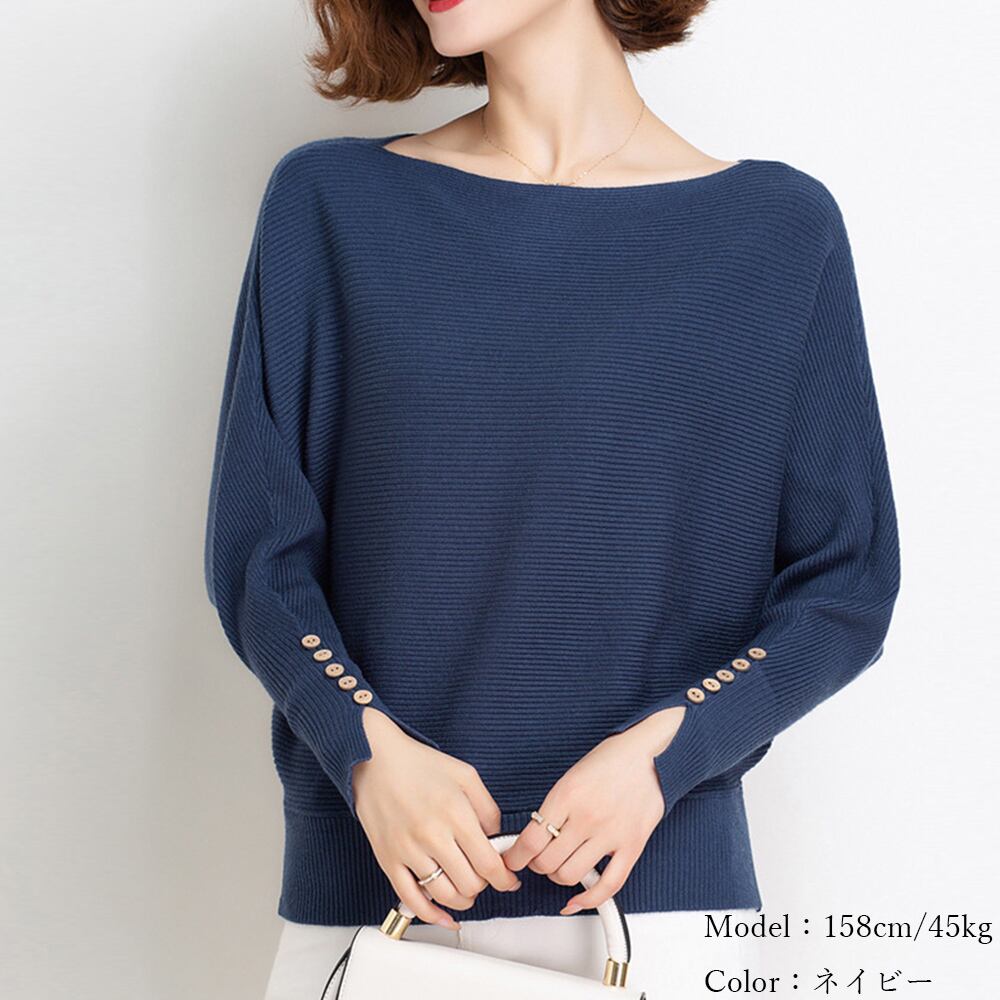 袖ボタン付きニット 着やせ 長袖 通勤 秋冬ニットトップス