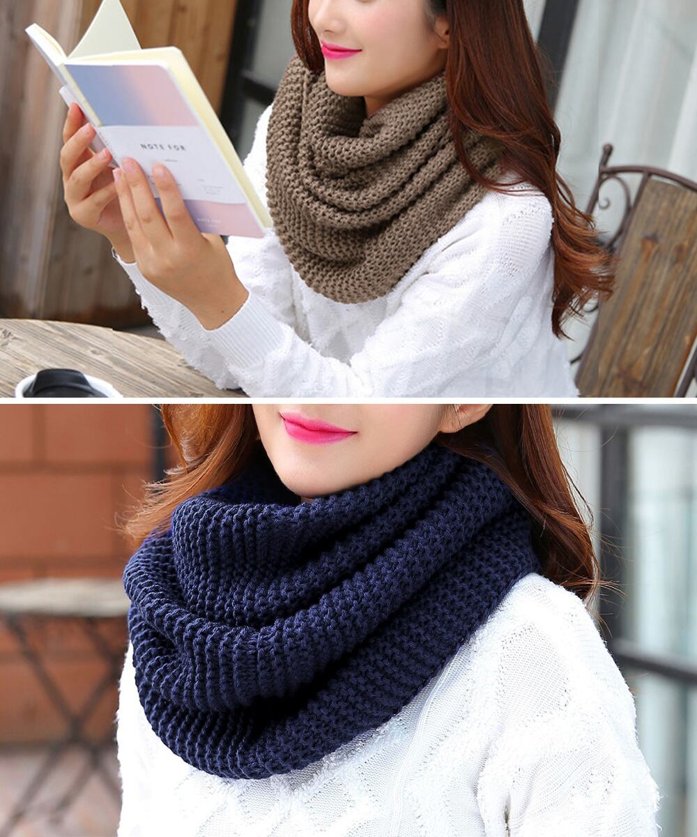 レディース襟巻き ロングニットマフラー 保温 ざっくり編み ネックカバー メンズ 厚手スヌード 二重巻き 秋冬防寒グッズ