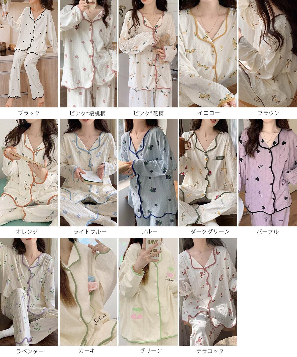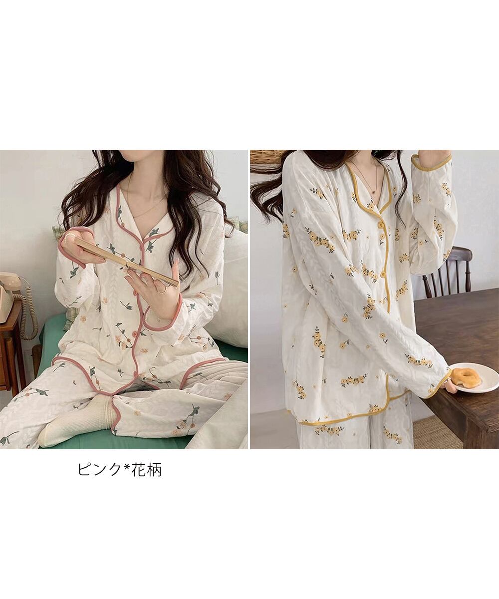大人可愛い ルームウェア 修学旅行 パジャマセットアップ 総柄 ラウンジウェア リラックス ナイトウェア 春秋冬 寝巻き