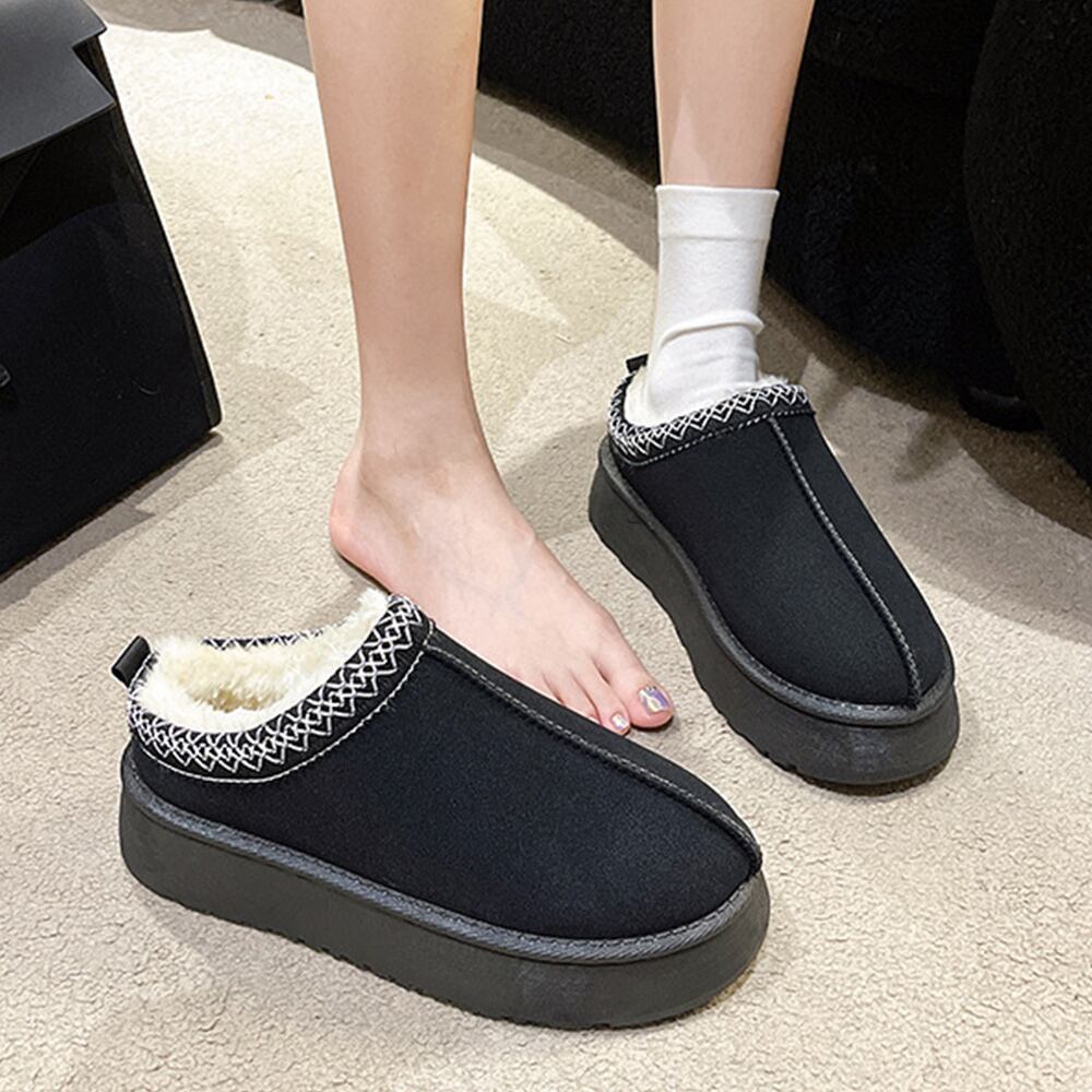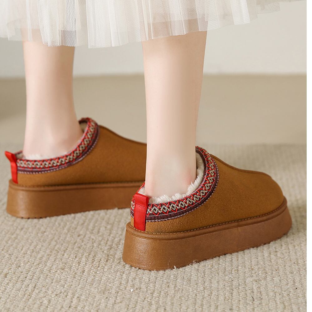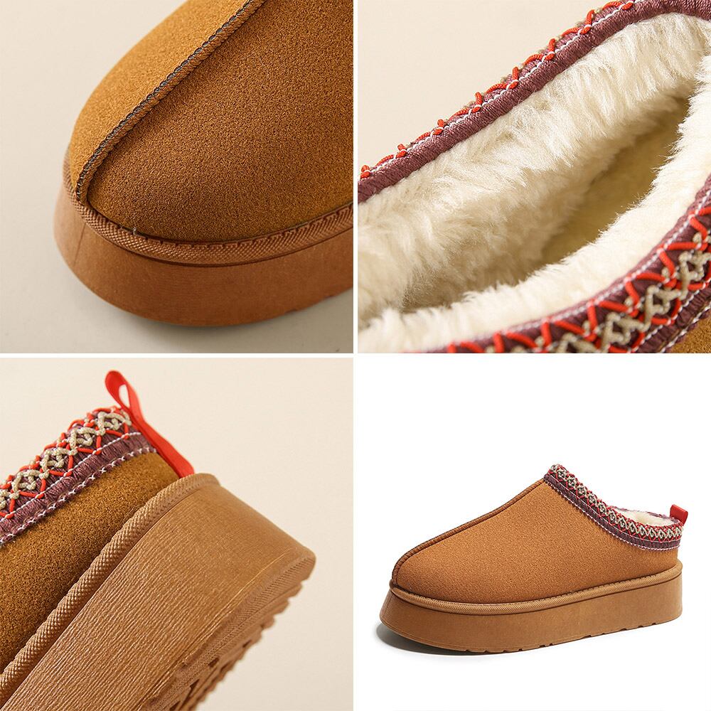 暖かいファーシューズ 厚底靴 もこもこ スリッポンモカシン 歩きやすい フラットシューズ カジュアル 秋冬 防寒靴裏起毛