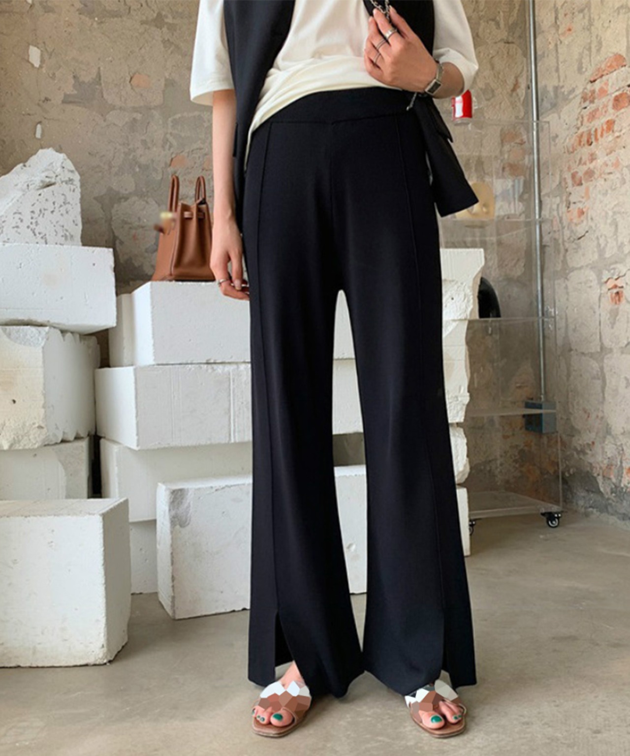 ニットワイドパンツ レディース スリット