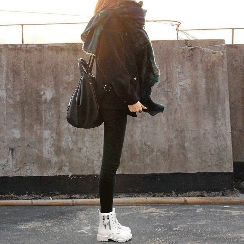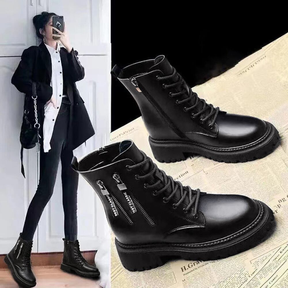 秋冬厚底靴疲れない 通勤通学 ブーツ黒 ローヒールおしゃれ