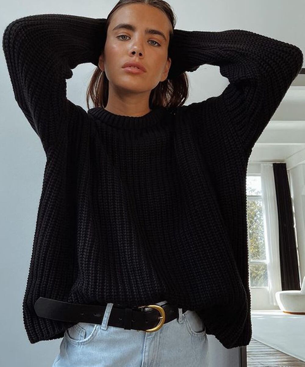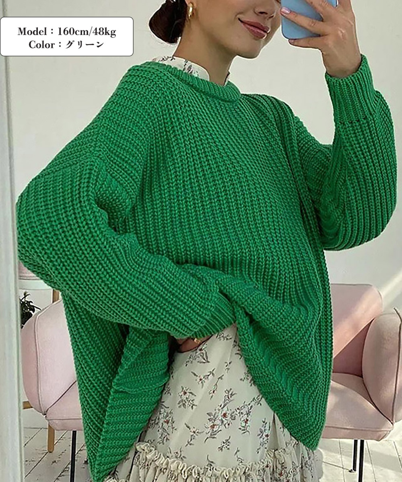 オーバーニット リブニット 着回し 着やせ韓国風ニット