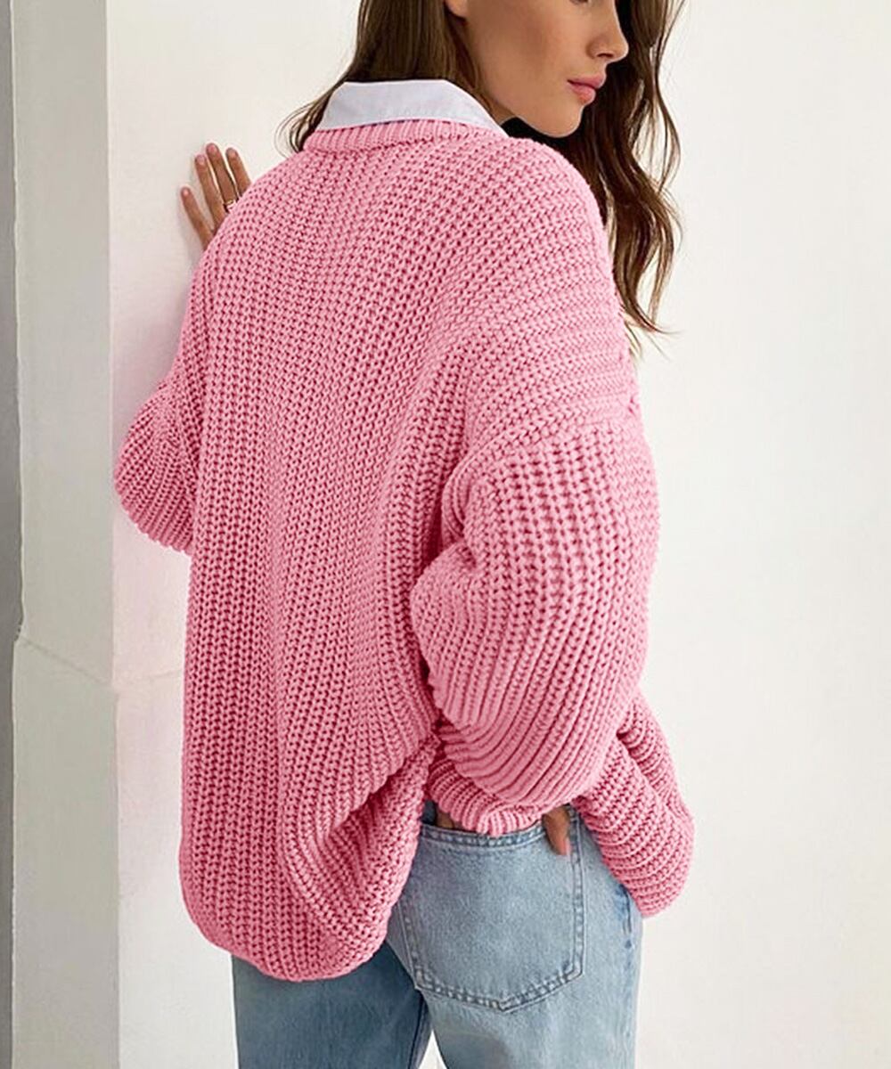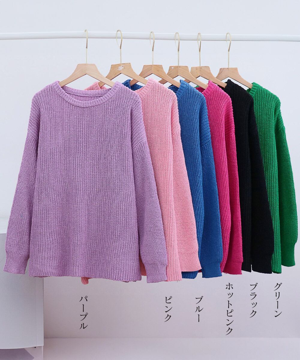 ニットトップス カラーニット 無地クルーネック 体型カバー シンプルカジュアル プルオーバー きれいめ ゆったりセーター