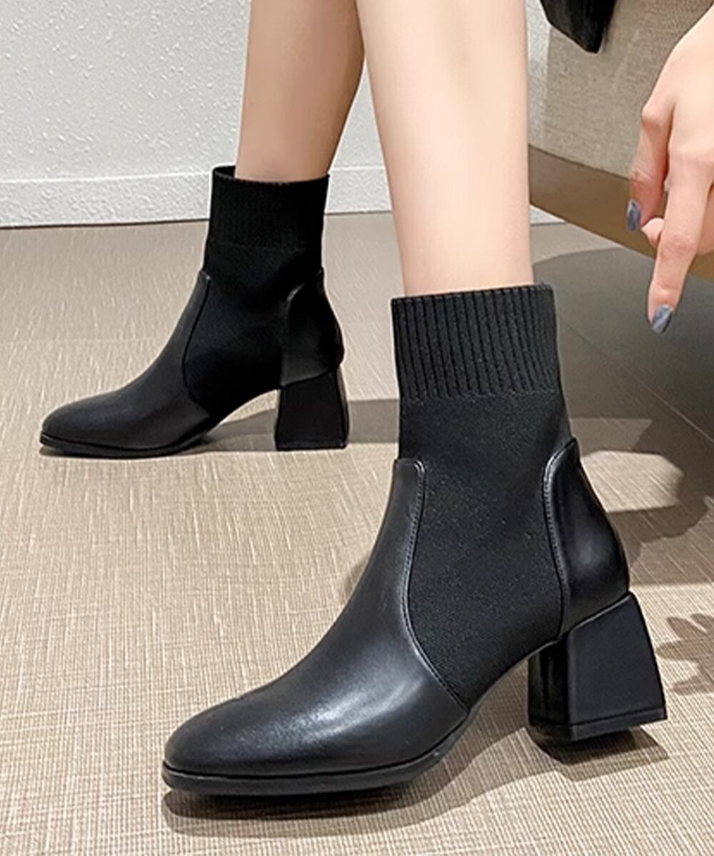 シューズ 太ヒール 靴  スクエアトゥ ショート丈 秋冬 ワークブーツ オルチャン 疲れない おしゃれ ストレッチ