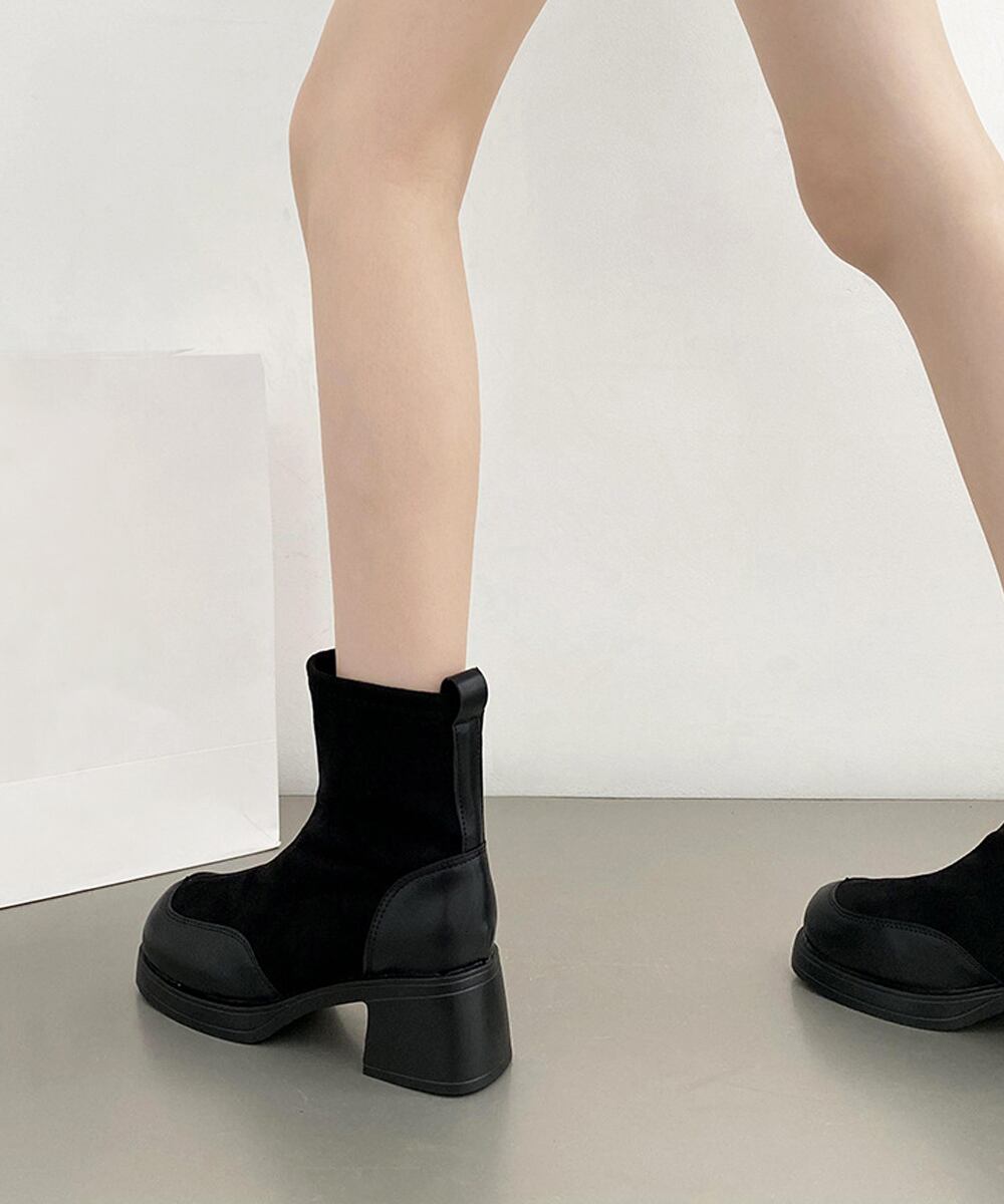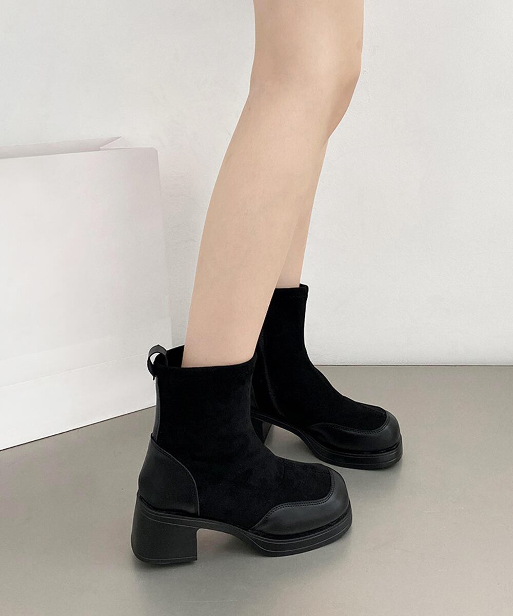 5.5cm太ヒール スクエアトゥ 美脚ブーツ 歩きやすい 履きやすい おしゃれ 大人カッコイイ カジュアル オルチャン