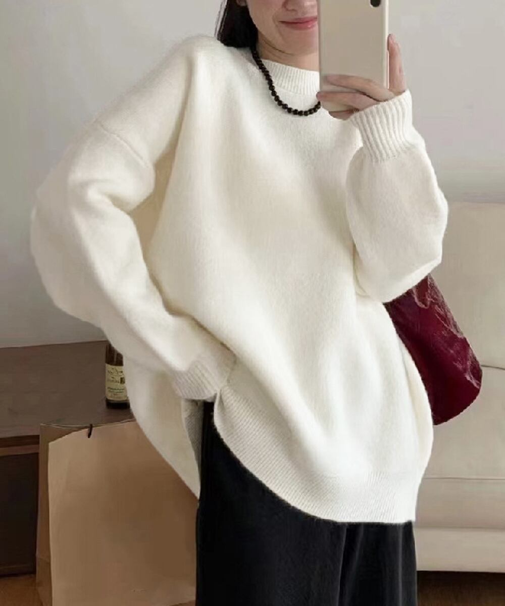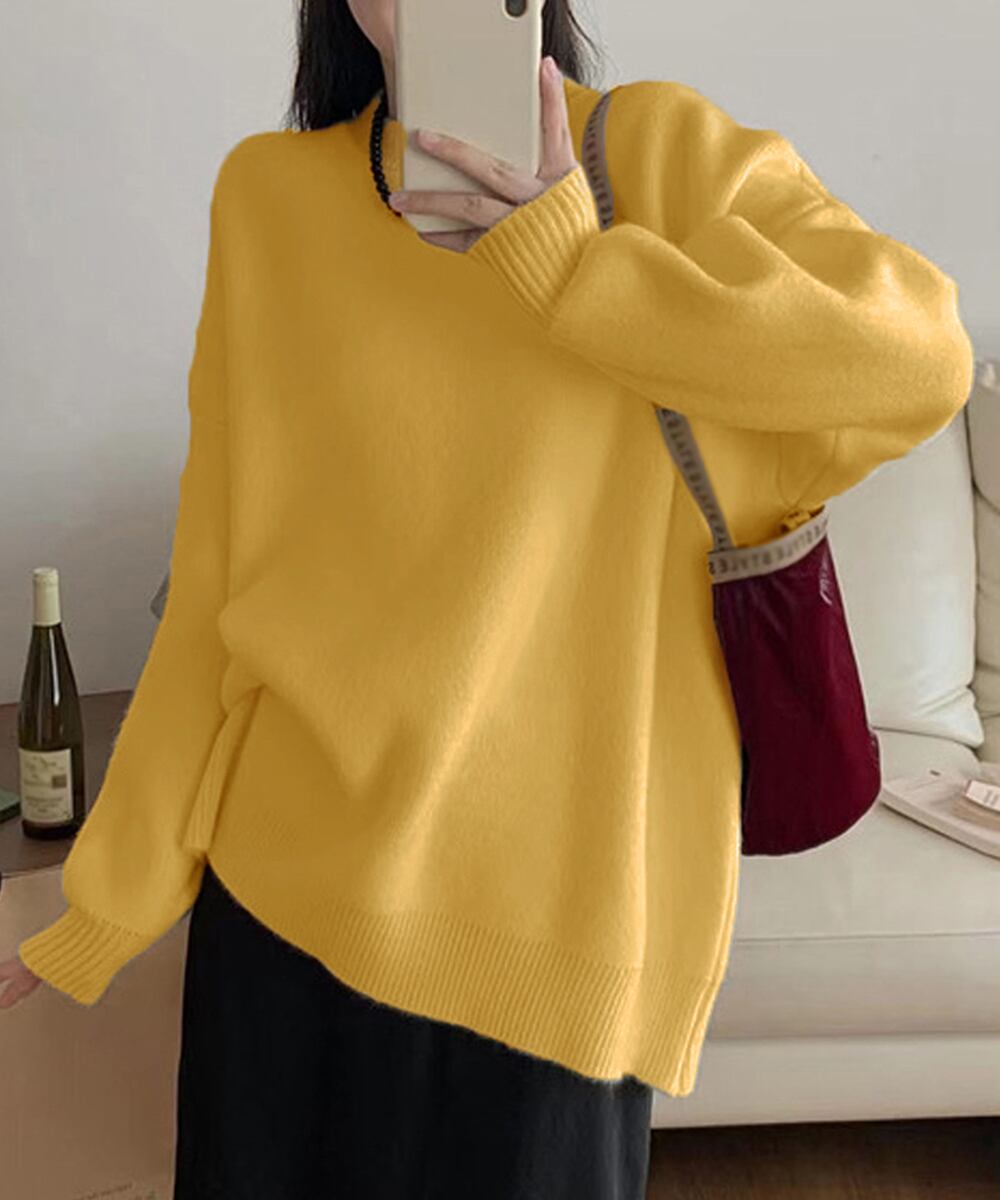 新作人気韓国ニット 体型カバーニット クルーネックニット