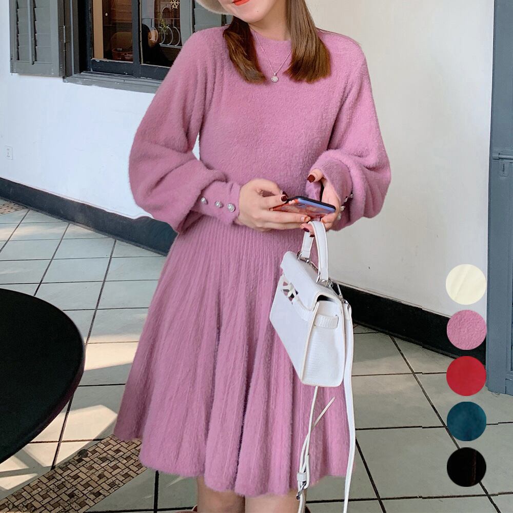 しっとりとした肌さわり抜群のミンクタッチのふわふわニットワンピースです