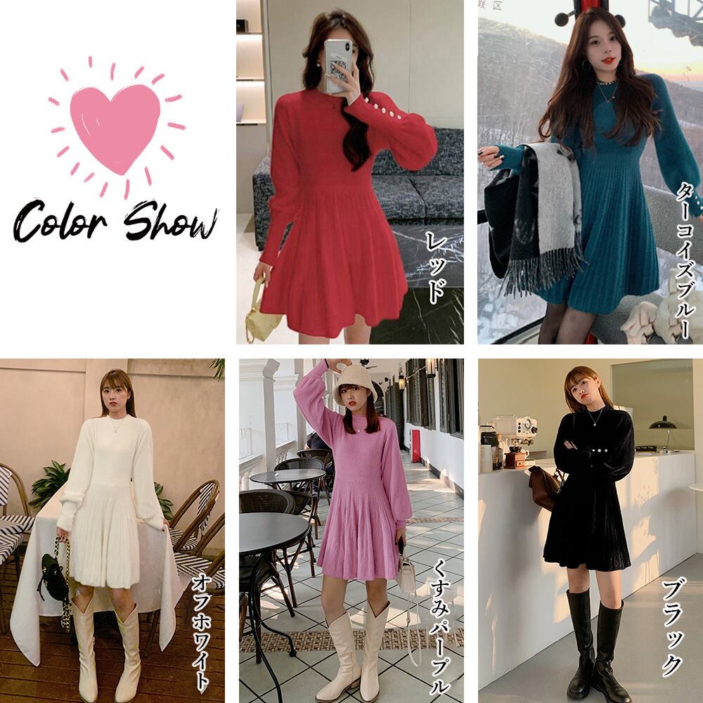 おしゃれ 膝上ワンピース ラウンドネック レディース フェミニン ショート丈ワンピ 秋冬 オフィスカジュアル 大人可愛い
