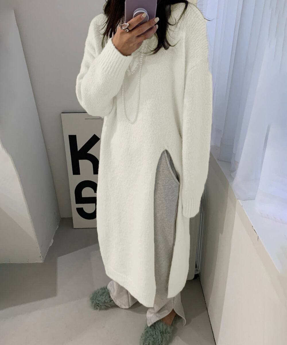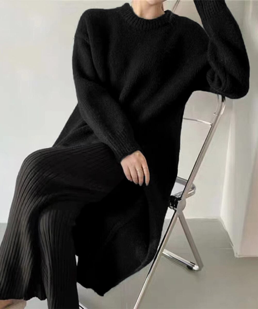 ニットチュニック冬 ニットワンピ着回し オフィスカジュアル