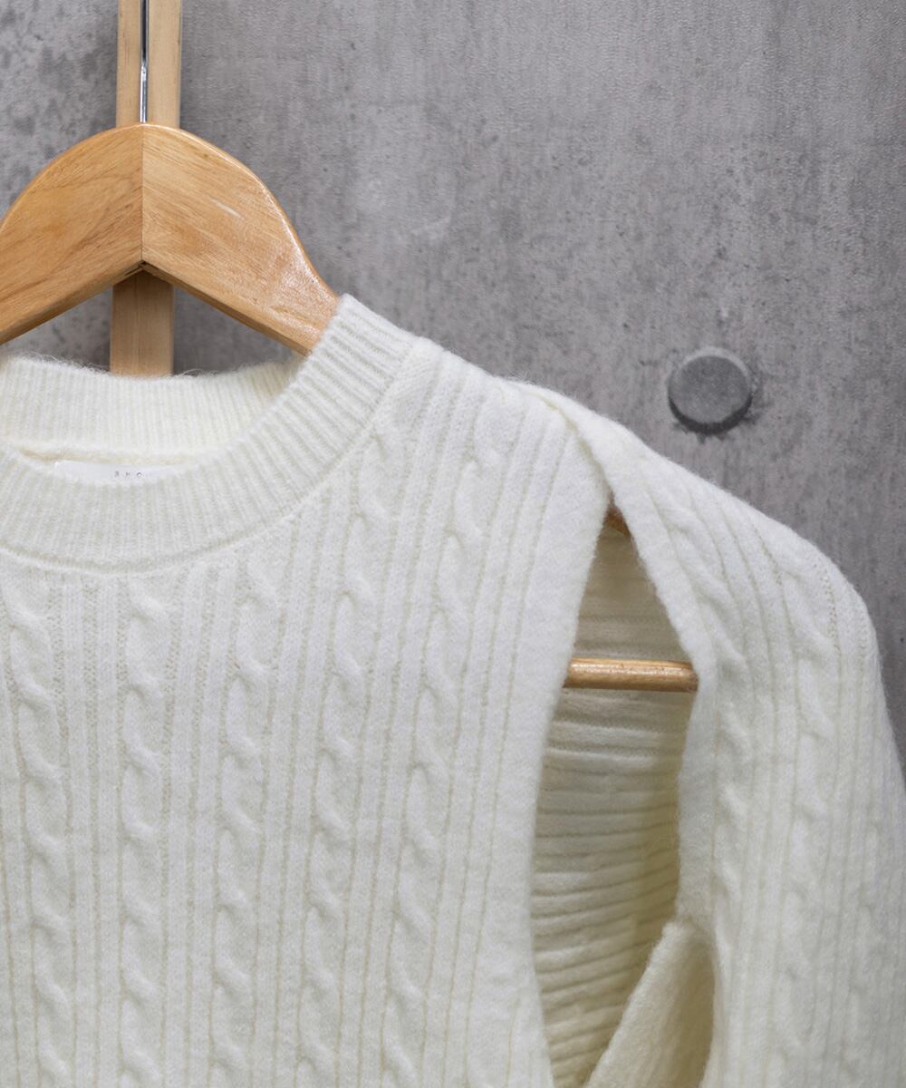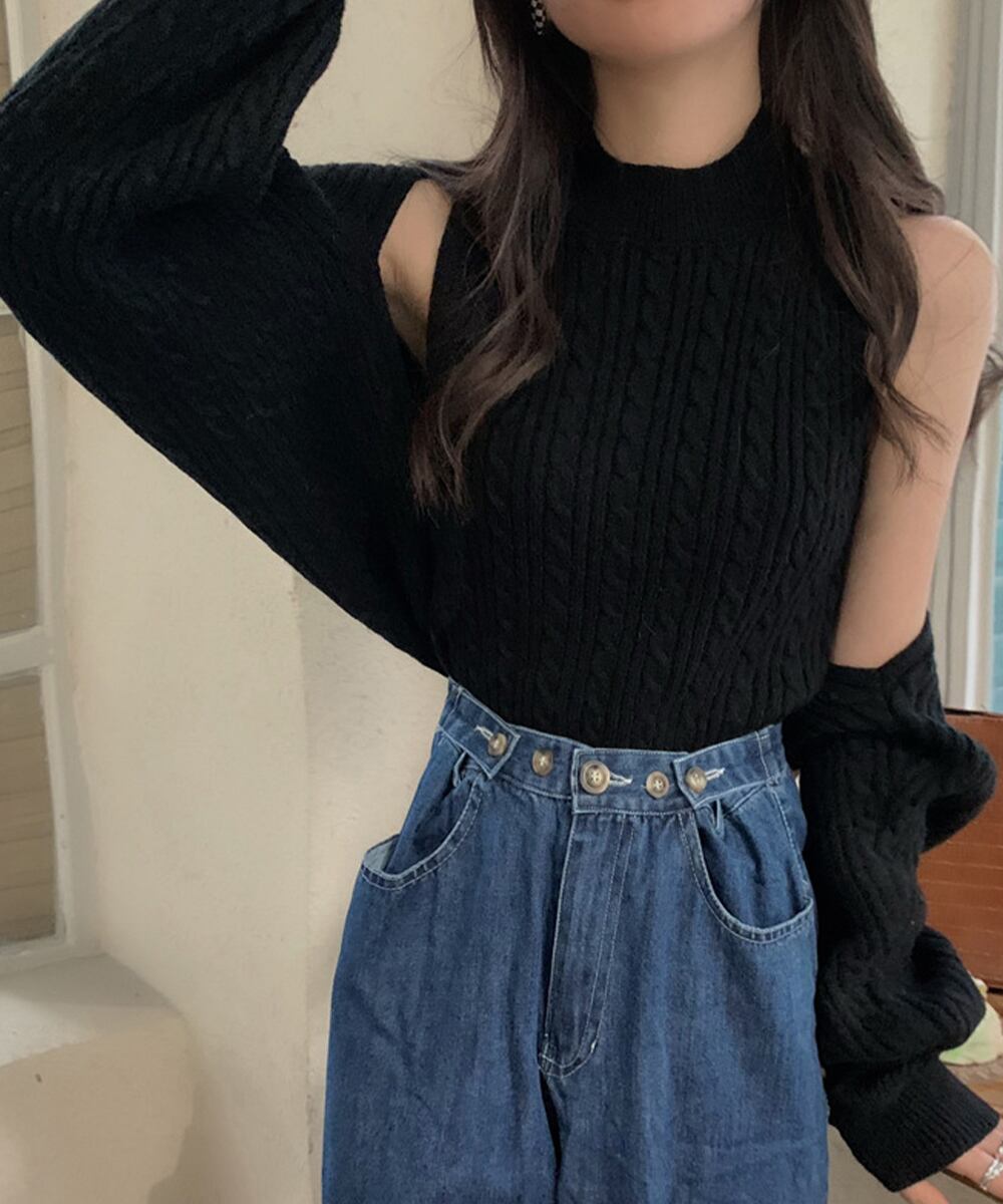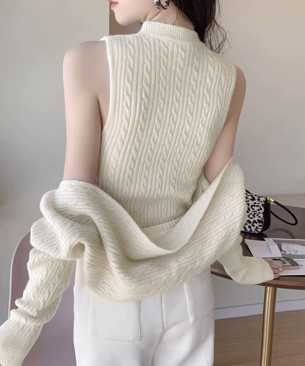 レディース ケーブル編み ニットアンサンブル 韓国 ボレロカーデ プチハイネック ニットタンク おしゃれ2点セット 秋冬