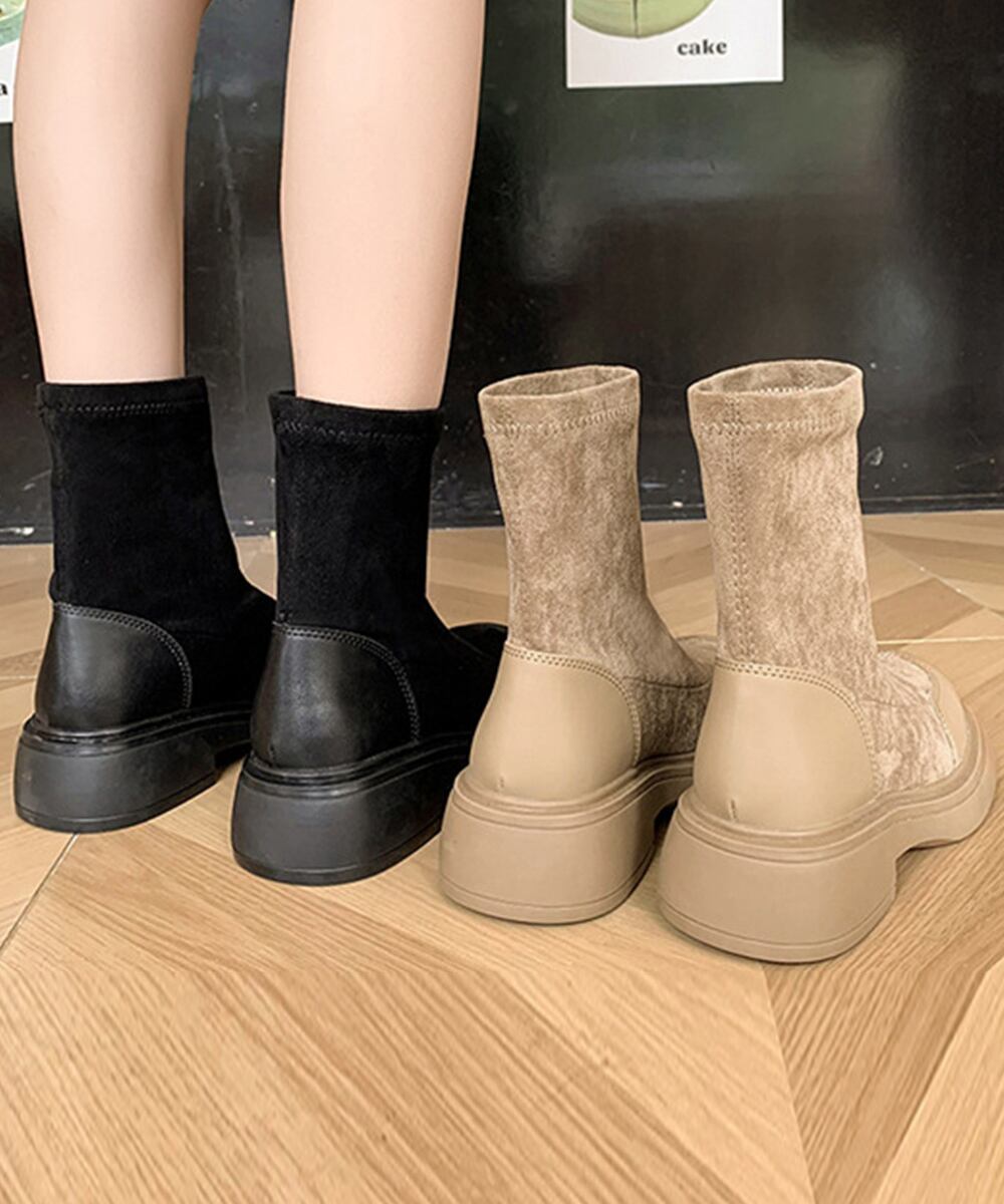 レトロ 厚底ブーツ ラウンドトゥ 美脚 ブーティ レディース 秋冬 ストレッチブーツ 韓国 歩きやすい 秋冬靴ローヒール