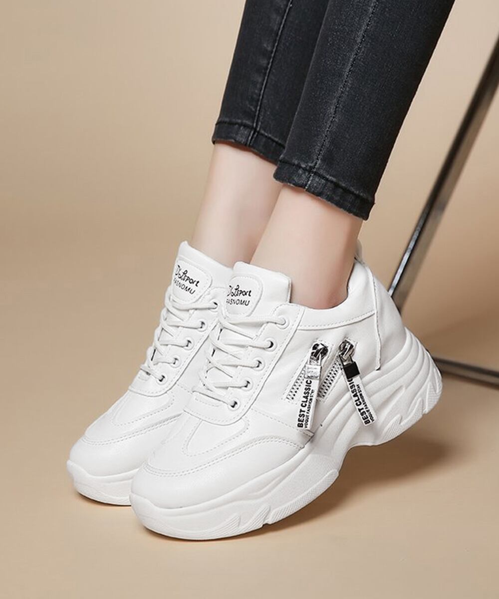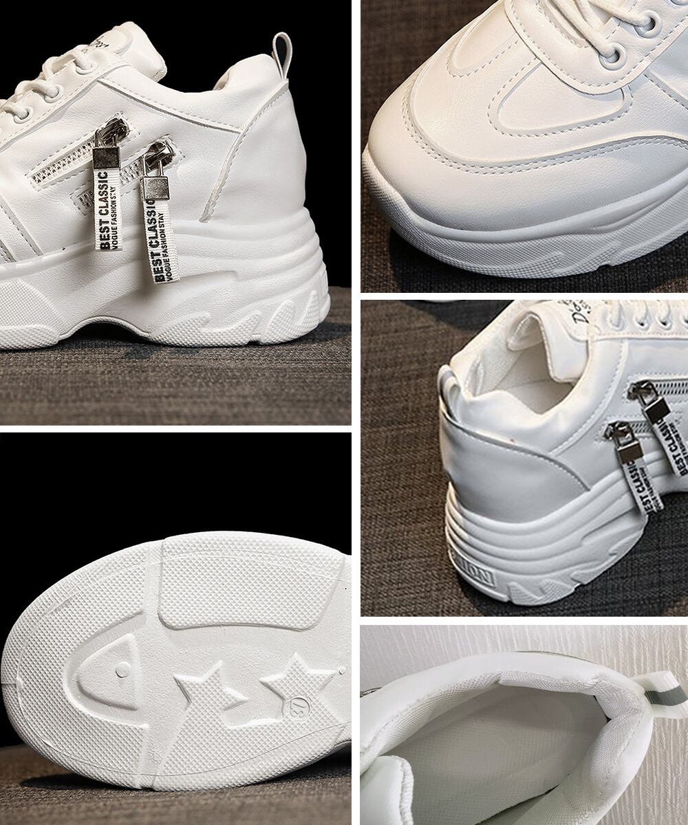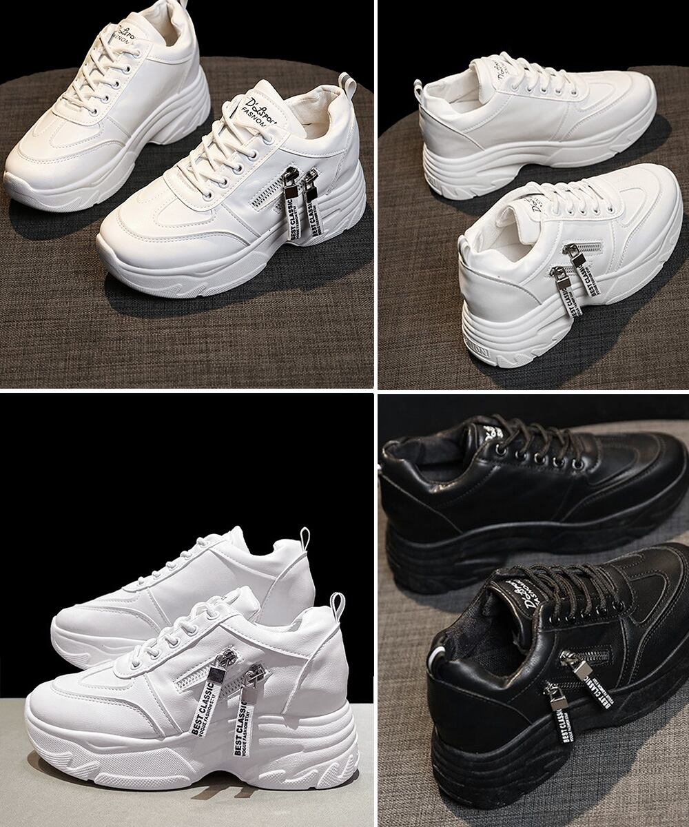 厚底スニーカー白黒 歩きやすいシューズ 韓国ファッション靴