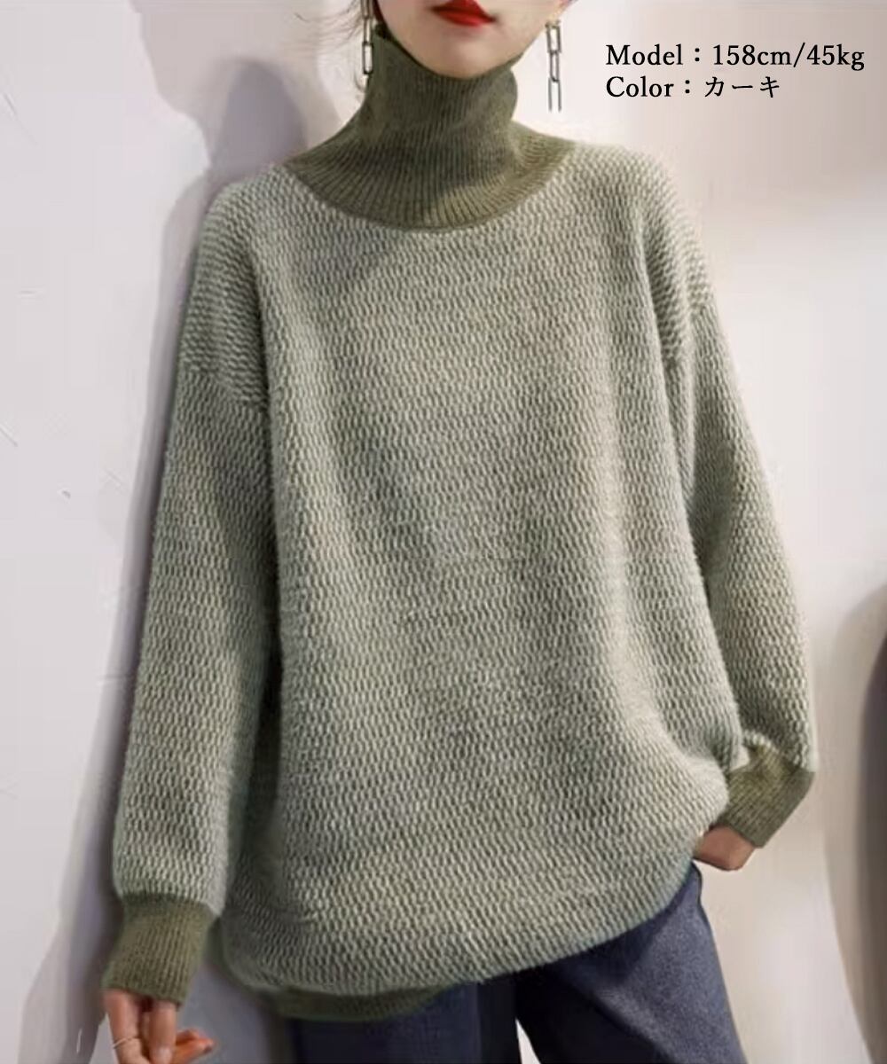 ゆったり ニットプルオーバー ハイネック 韓国ファッション ニットセーター 暖かい 長袖 オフィスカジュアル秋冬服 大人