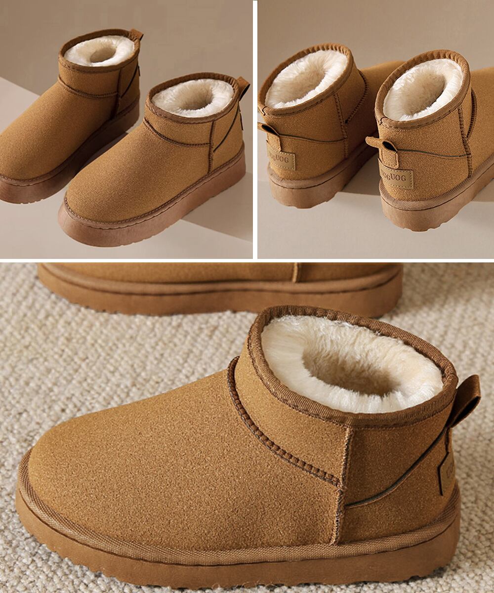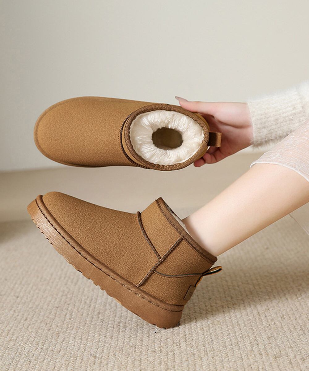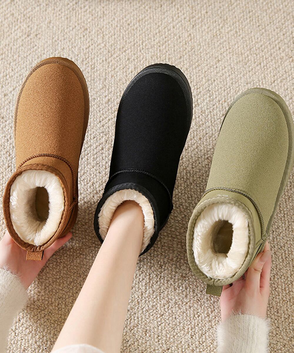 秋冬の定番靴、シンプルなデザインで着る服を選ばない無地のムートンブーツ